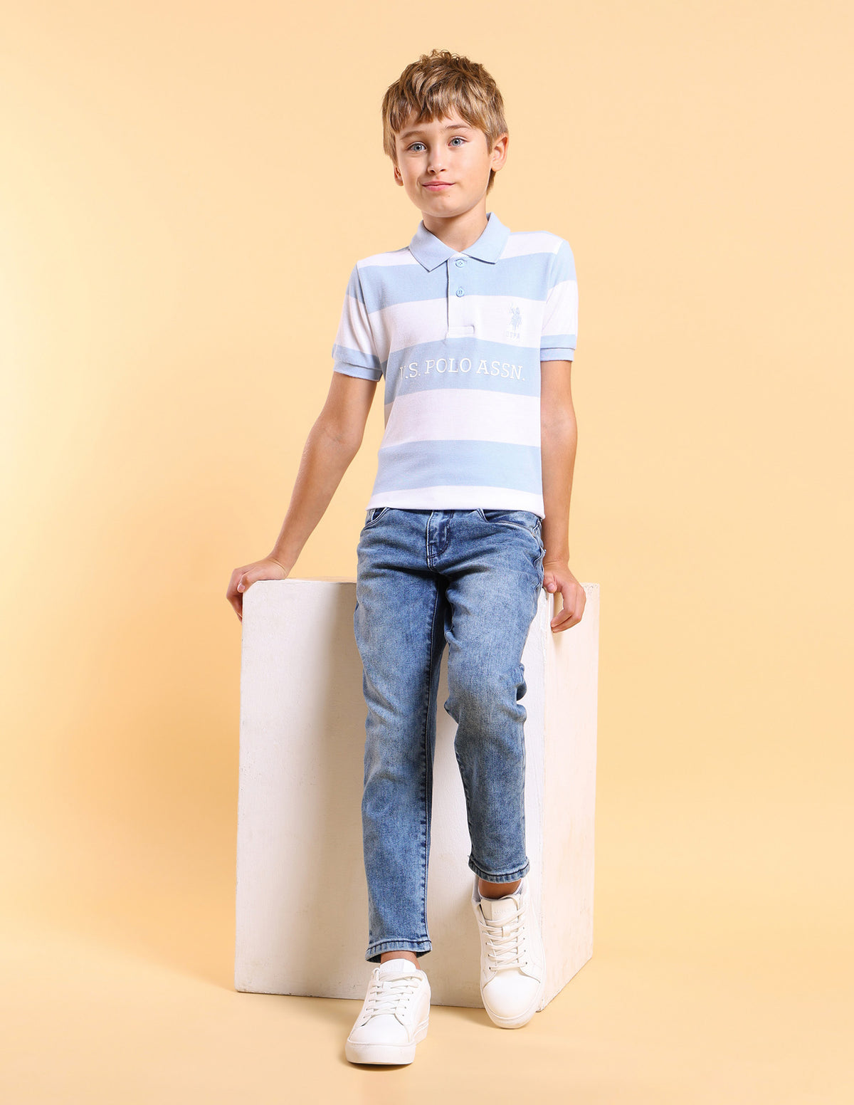 Boys Regular Fit Horizontal Striped Polo Shirt