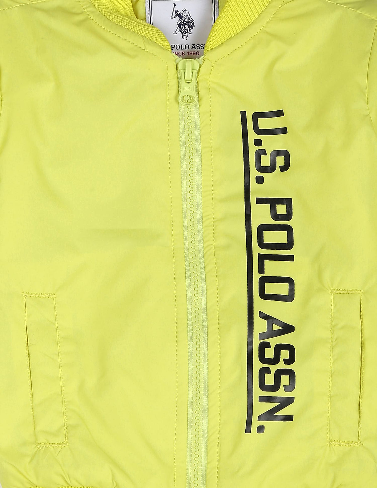 Story: Spruce up his outerwear assortments with this solid jacket from U.S Polo Assn. Crafted from light fabric, it comes with a stand collar and long sleeves with ribbed hems. Let him wear it with a t-shirt and jeans on a chilly evening.