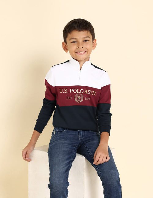 Boys Colour Blocked High Neck Sweatshirt