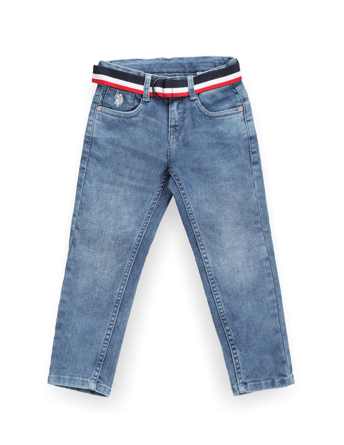 Boys Striped Belt Slim Jeans