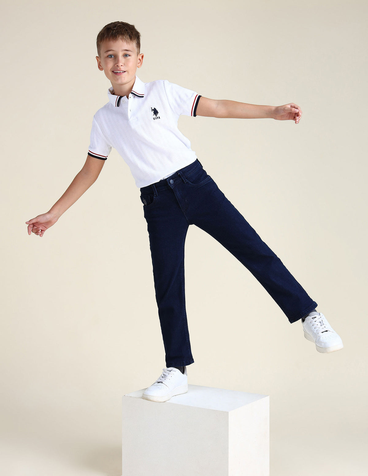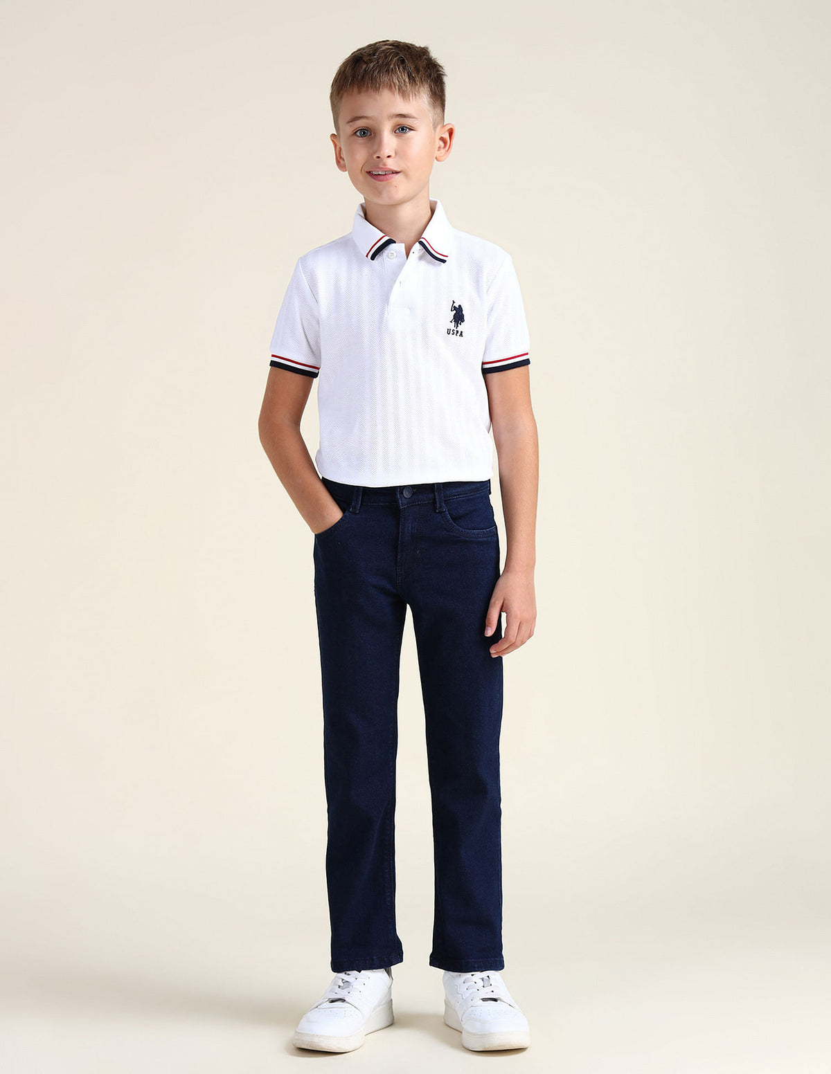 | Mid-rise waist | Button and zip fly closure | Five pockets | Dark washed | Denim weave | Relaxed fit |