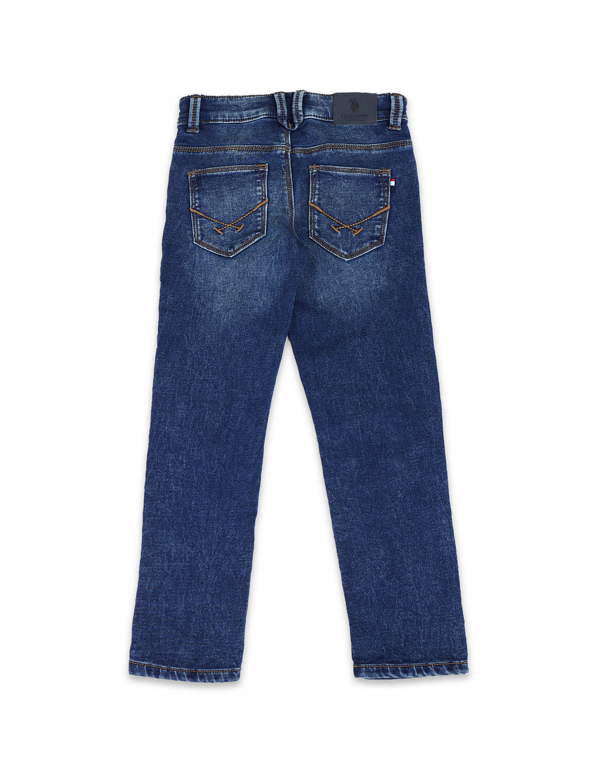 | Mid-rise waist | Button and zip fly closure | Five pockets | Stonewashed | Denim weave | Slim fit |
