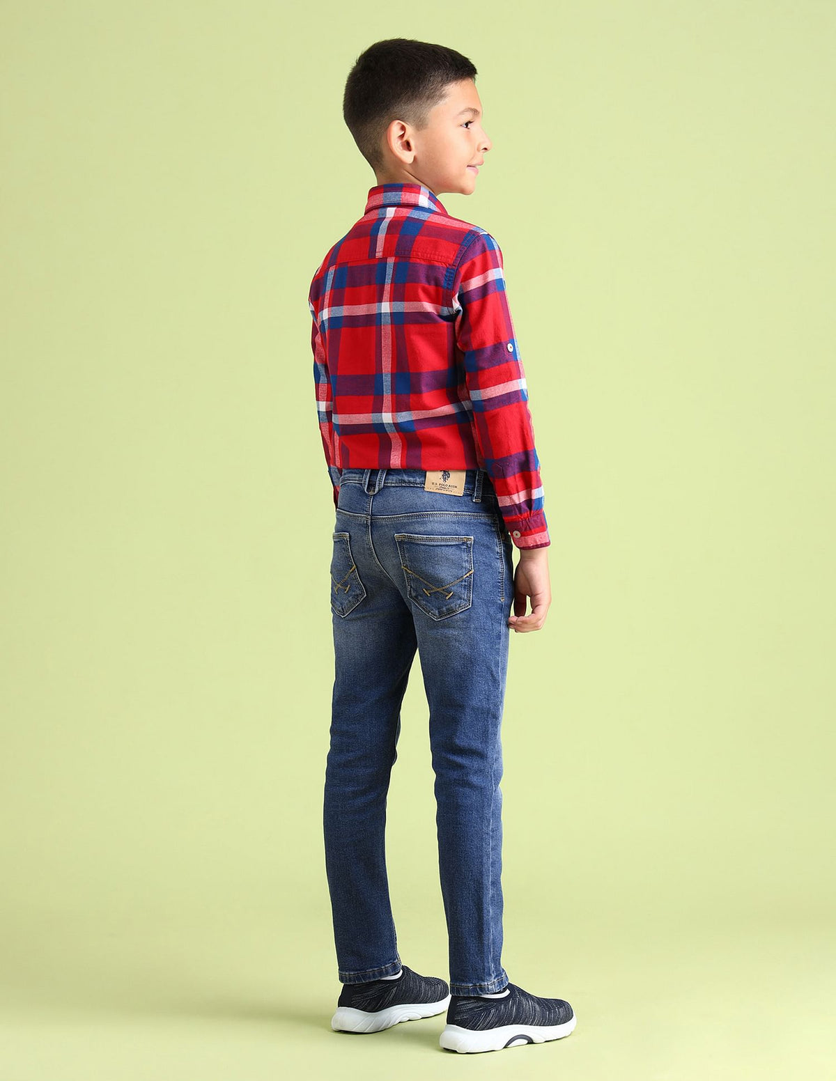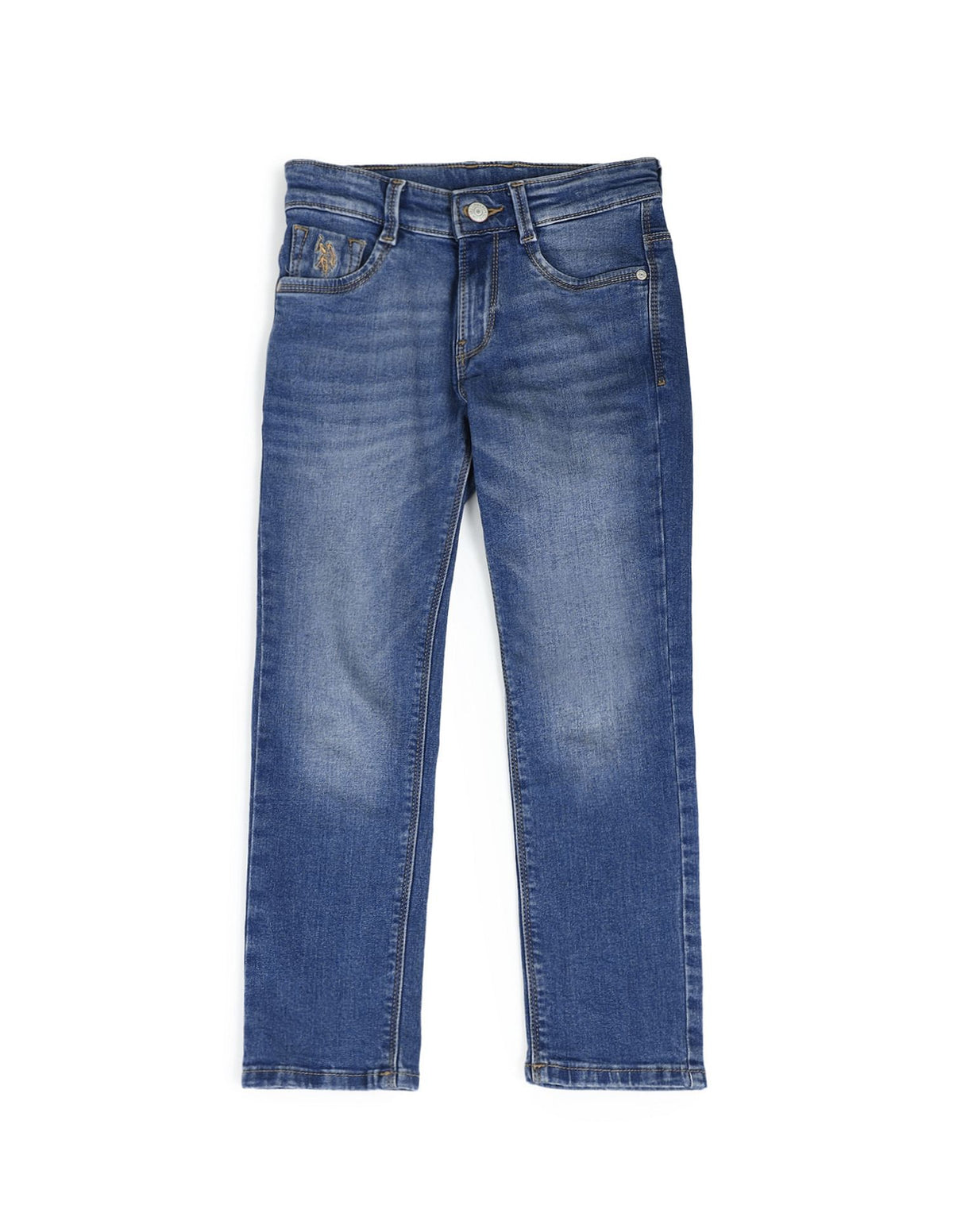 | Mid-rise waist | Button closure with zip fly | Five pocket styling | Stonewashed | Denim weave | Slim fit |