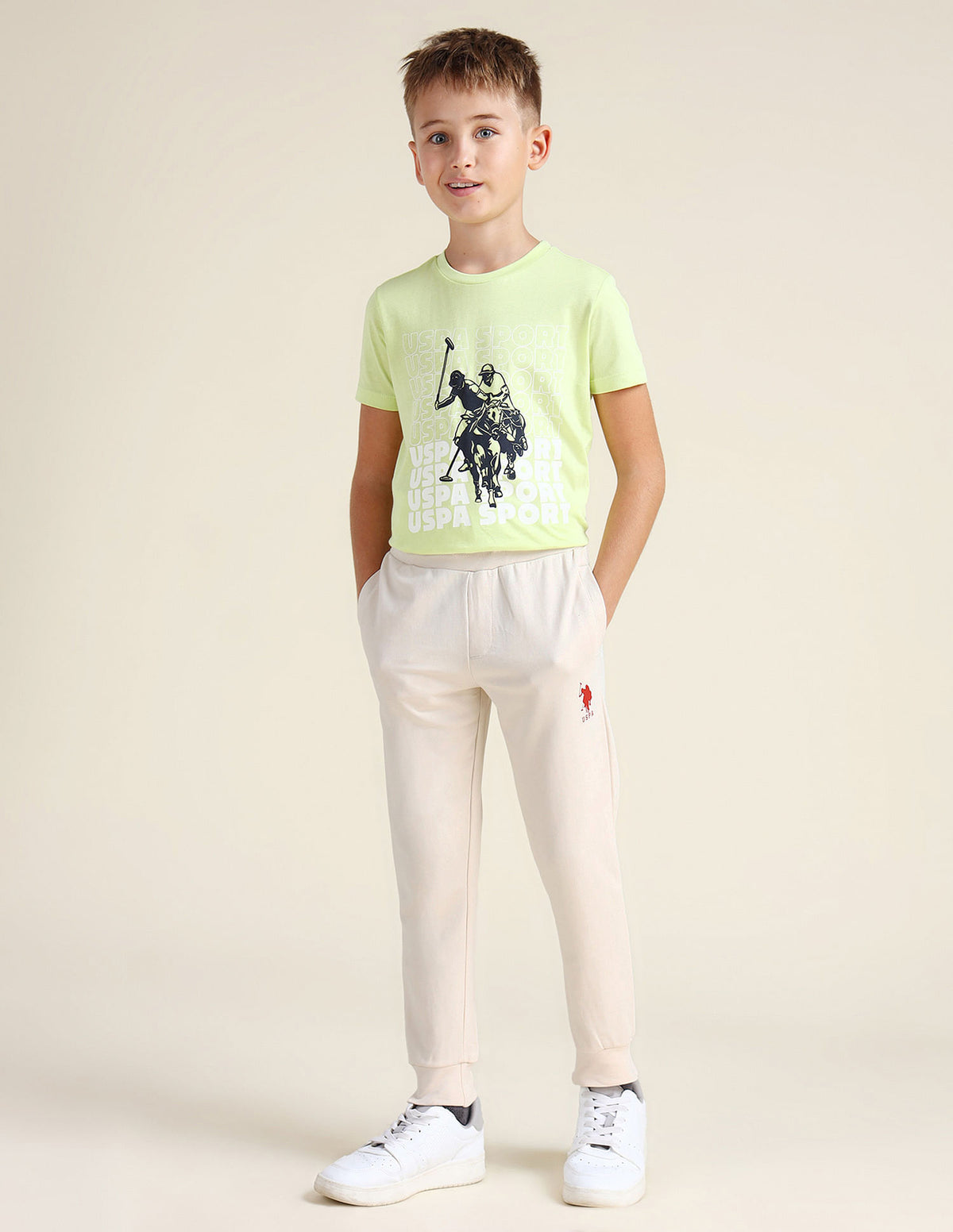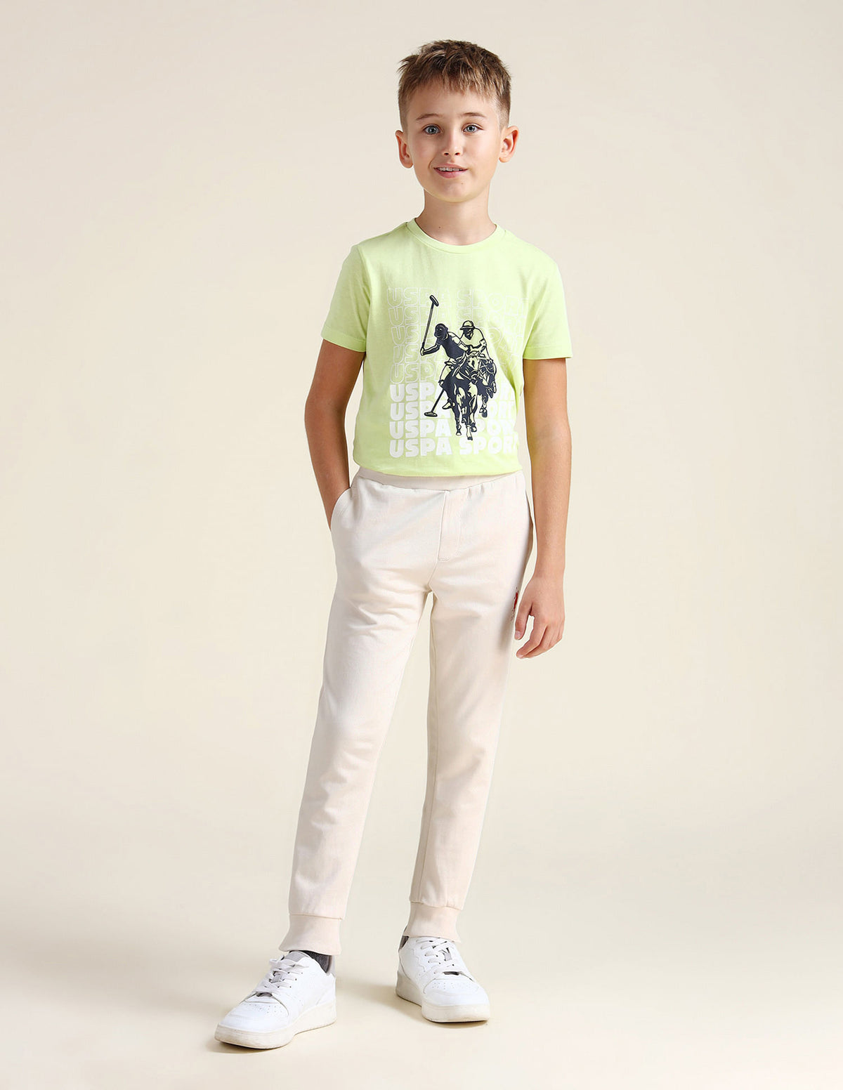 | Mid-rise | Elasticised waist with drawstring | Two pocket styling | Ribbed ankle hems | Brand printed pattern | Knitted | Regular fit |