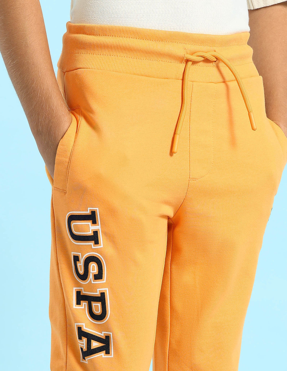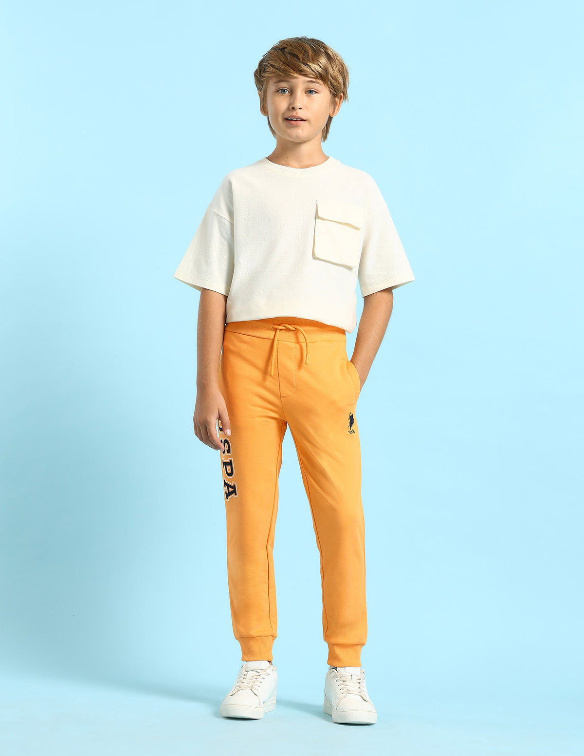 - Logo badge at left leg