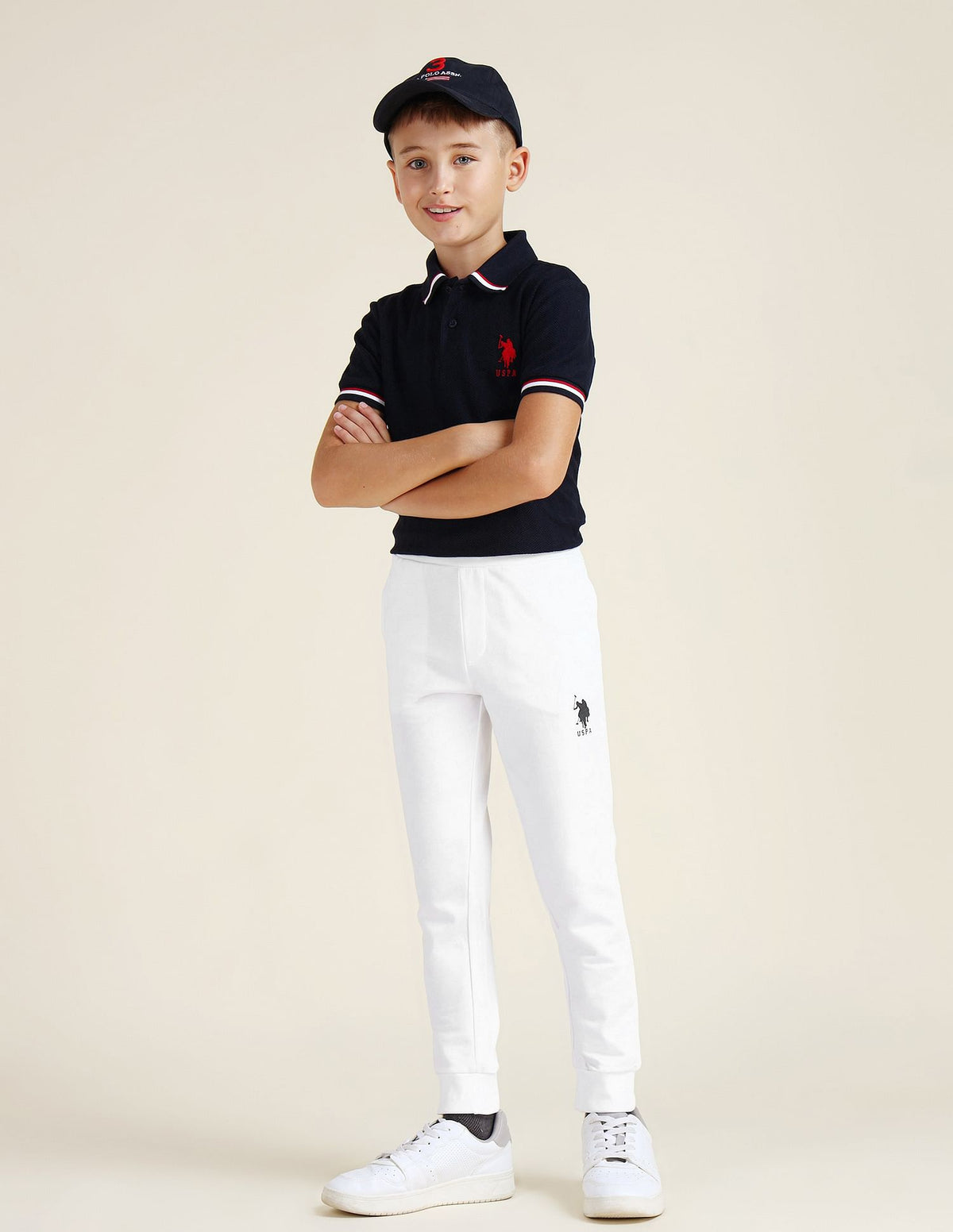 | Mid-rise | Elasticised drawcord waist | Two side pockets | Ribbed ankle hems | Solid pattern | Knitted | Regular fit |