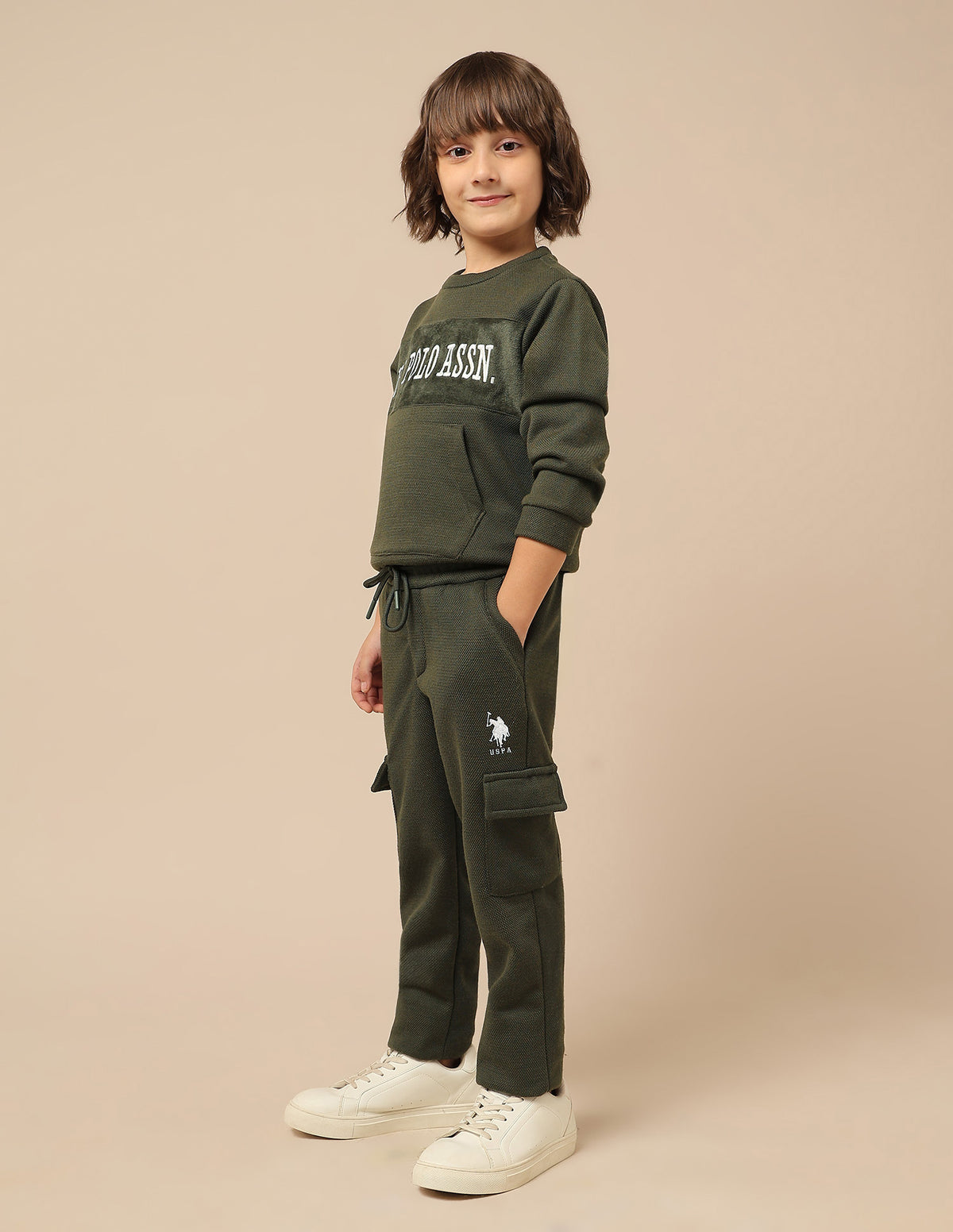 - Logo at left leg