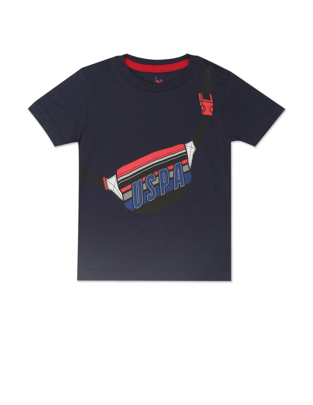 Boys Navy Blue Crew Neck Graphic Print T Shirt