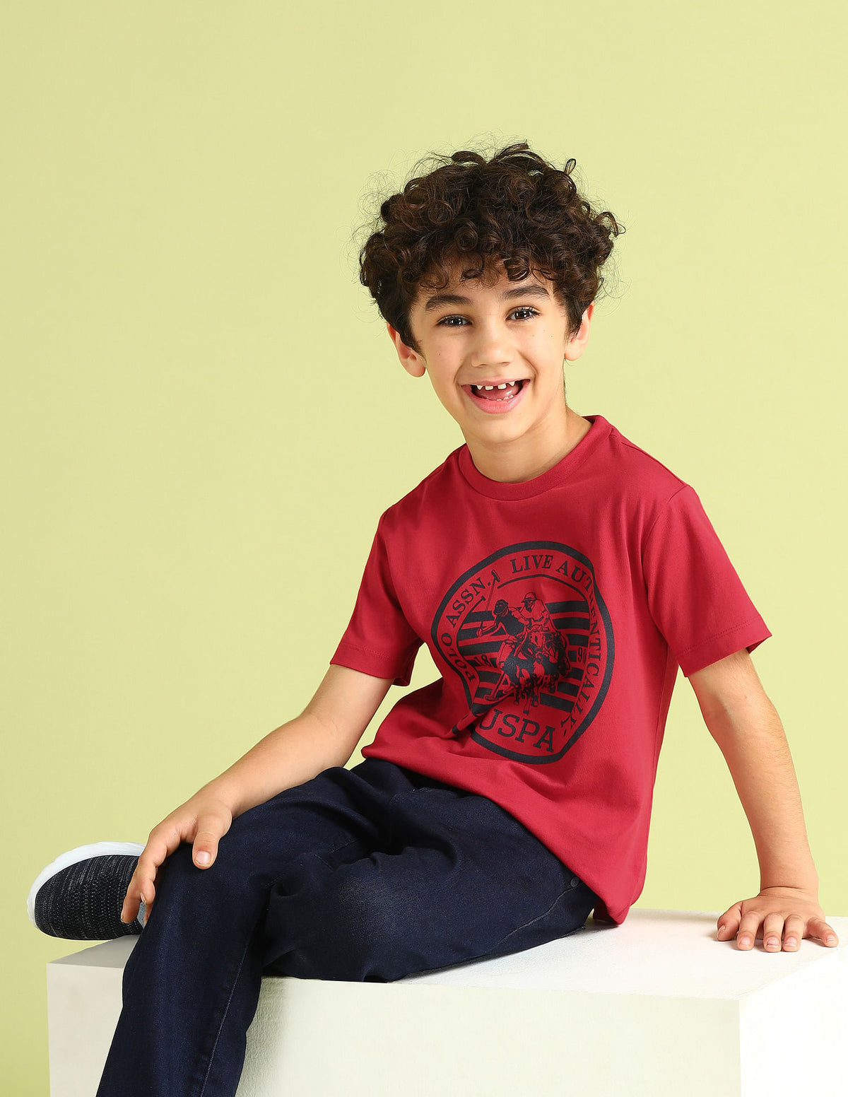 | Ribbed crew neck | Short sleeves | Logo printed pattern | Knitted | Regular fit |