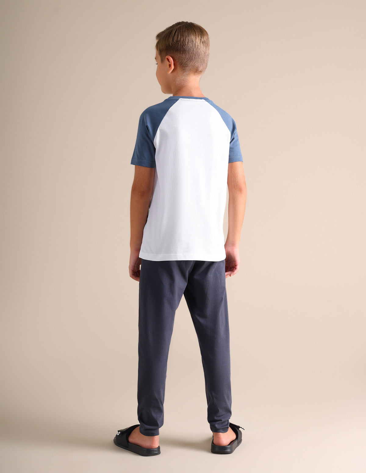 | Pack of 1: | Crew neck ensures shape retention that withstands repeated wash and wear | Short raglan sleeves keep him comfortable | Straight hemline | Tag-less design for zero irritation | Light and airy cotton fabric | Colourblocked and brand printed pattern | Knit construction ensures the material is lightweight and comfortable | The pure cotton fabric has better breathability and absorbency | Country Of Origin - India- New Season