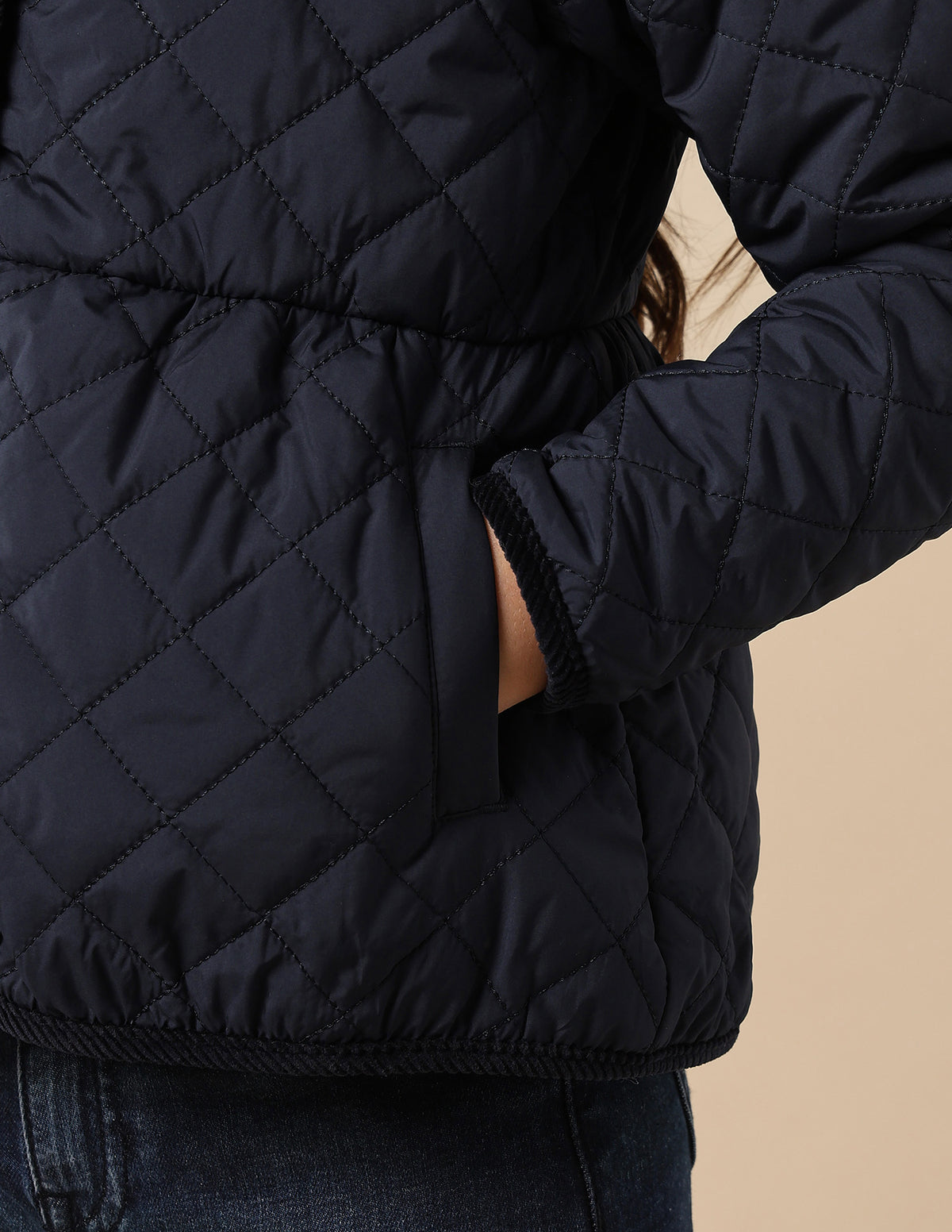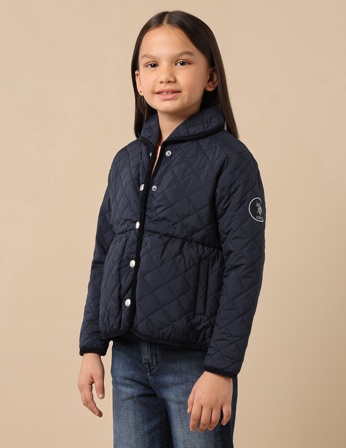 Girls Diamond Quilted Solid Jacket