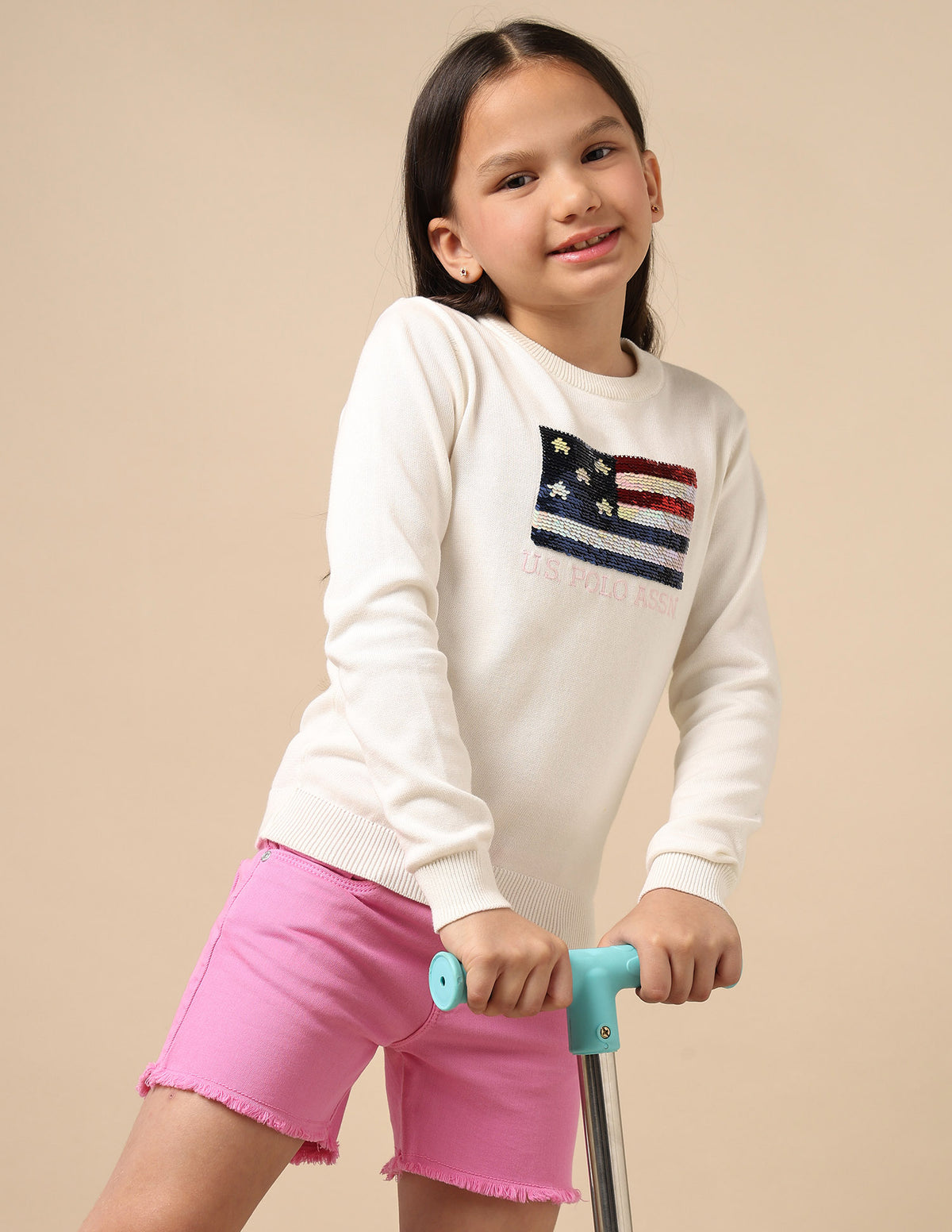 Story: This crew neck sweater from the Iconic Brand Carrier collection will slot seamlessly into your little girl's casual rotation and is designed to keep her comfort in mind.