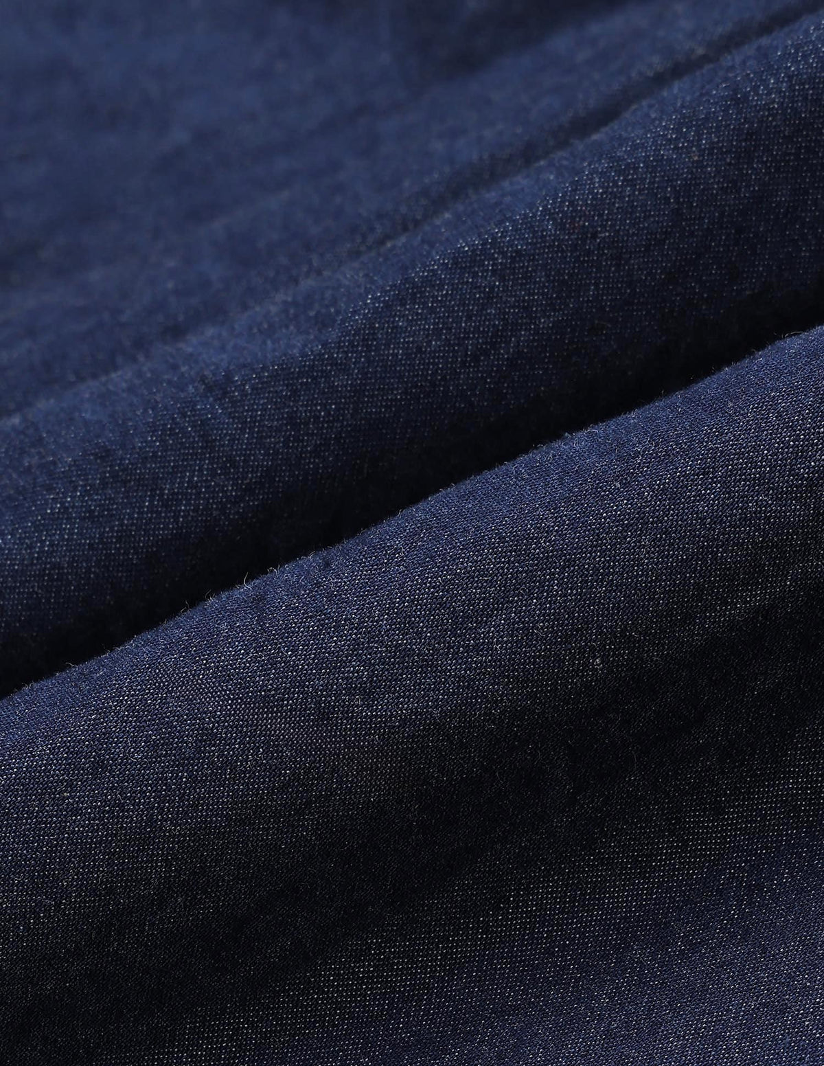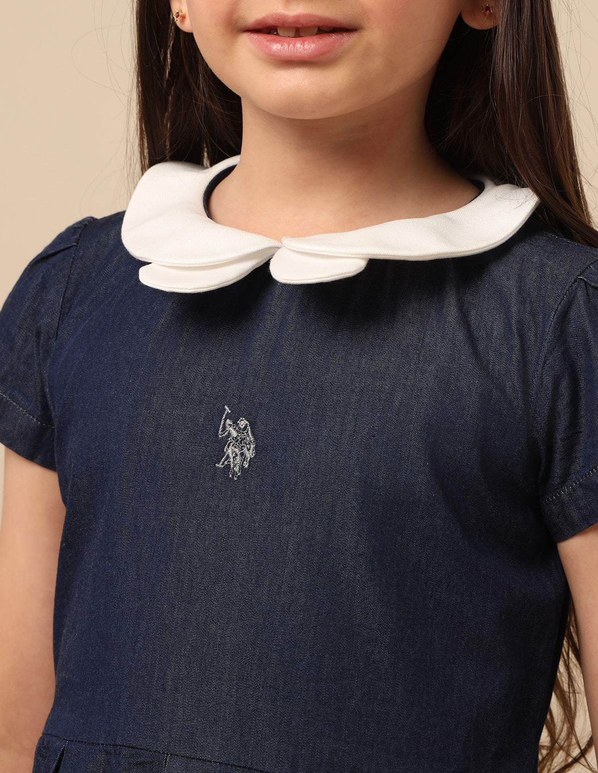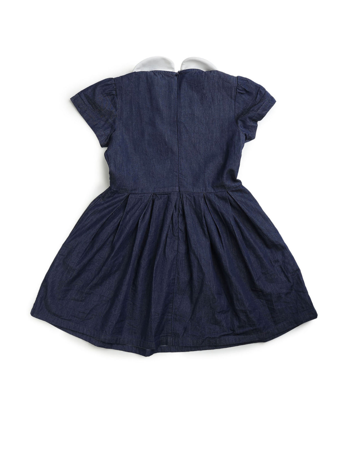 Story: Girls' solid denim dress with contrast collar, perfect for casual outings and combining style with comfort.