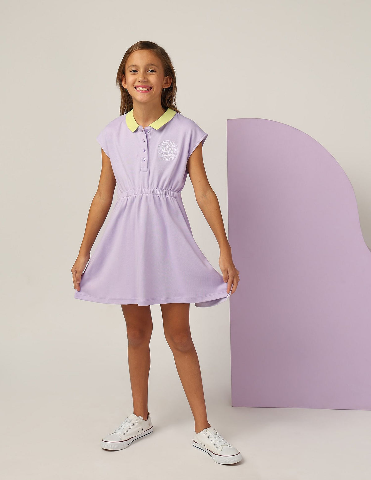 Girls Cinched Waist Polo Dress