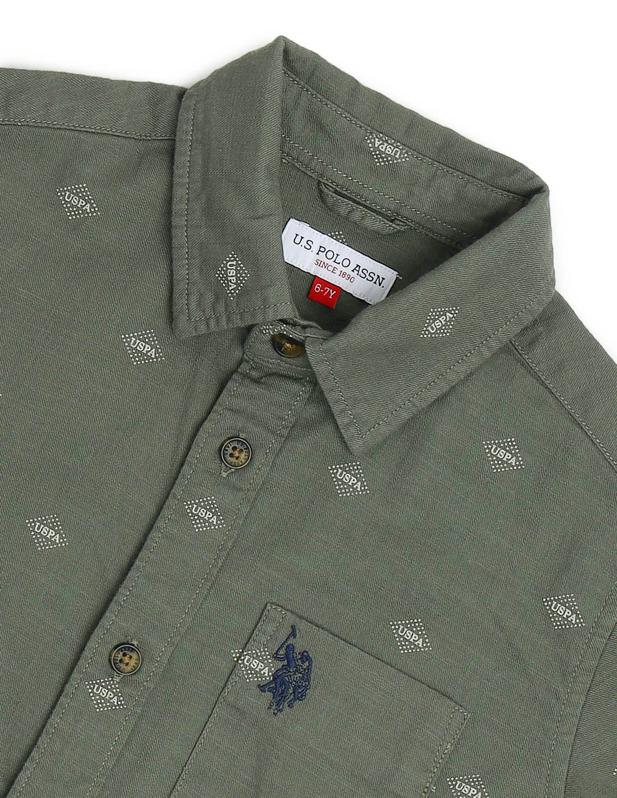 Story: Boys' casual shirt with logo design, perfect for expressing personal style. Ideal for school or weekend outings.