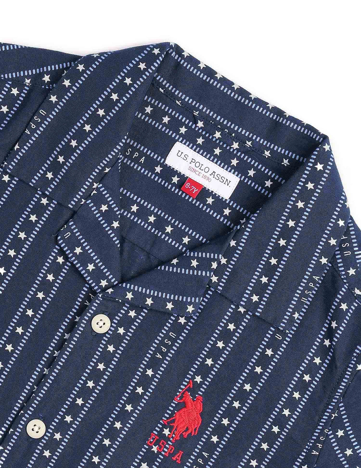 Story: Boys' geometric casual shirt, adding a modern and stylish touch to their everyday outfits.
