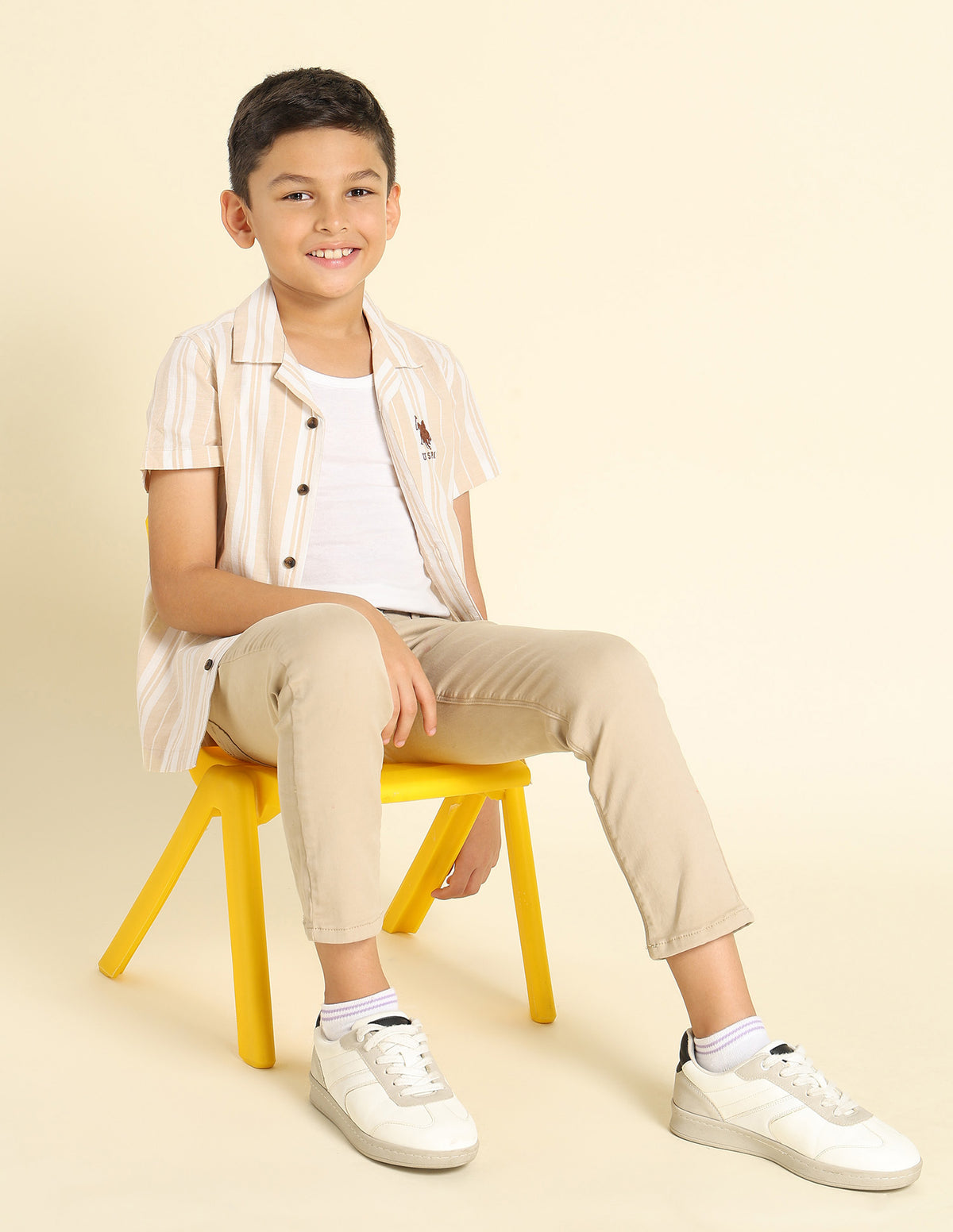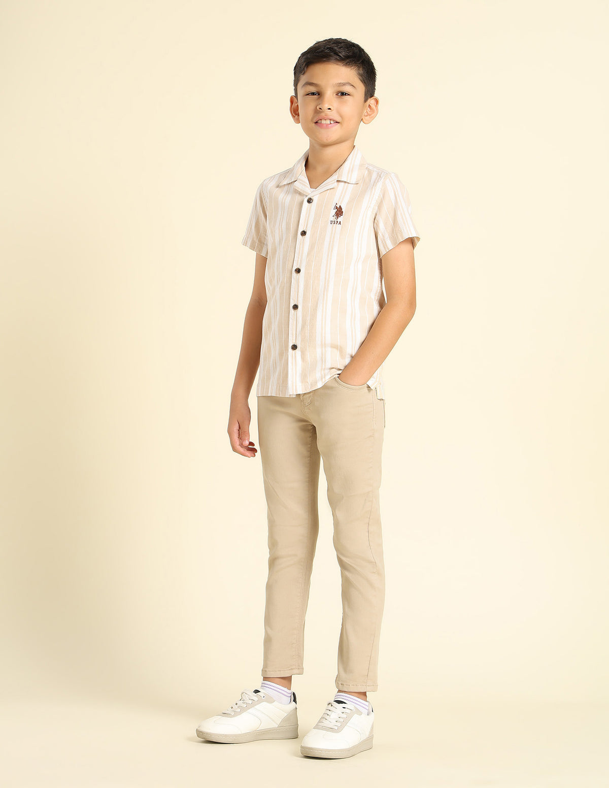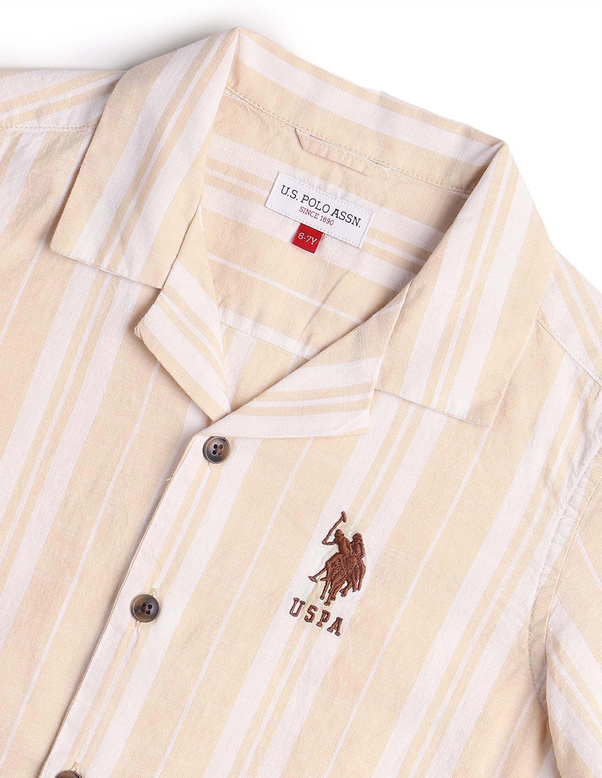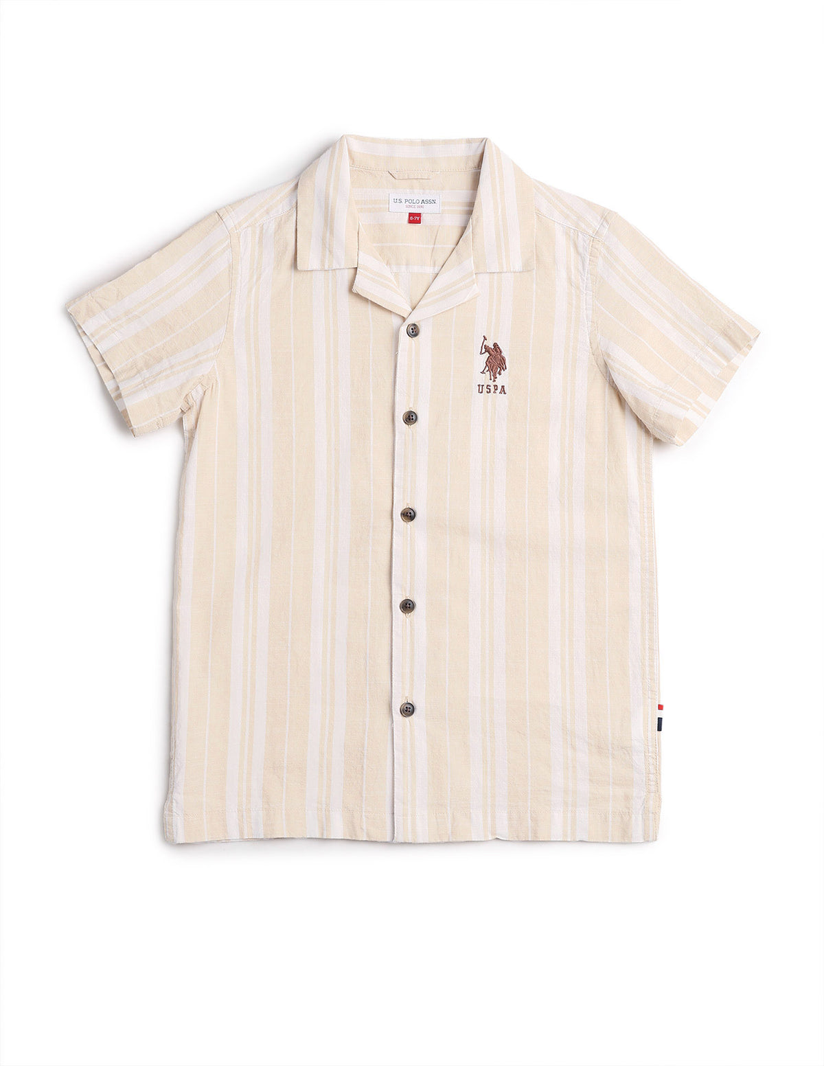 Story: Boys' fashion gets a classic twist with our vertical-striped casual shirt. Stylish and comfortable for any relaxed occasion.