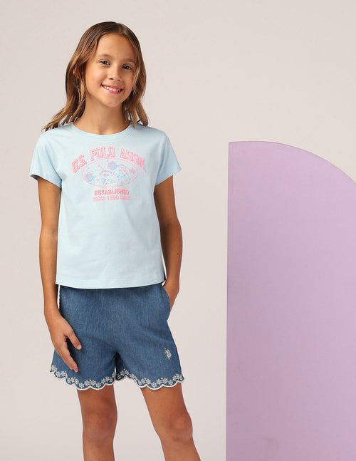 Girls Brand Printed Regular Fit T-Shirt