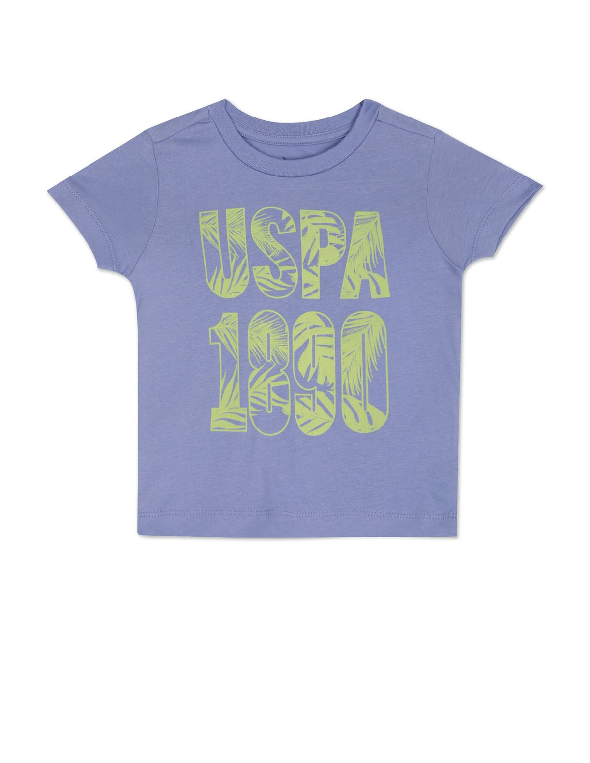 Story: Add a pop of colour to your little one's casual attire with this purple tee from U.S. Polo Assn. It's detailed with a ribbed crew neck, brand print at chest and short sleeves. Let him wear it with a pair of jeans and sneakers for a day at the park.