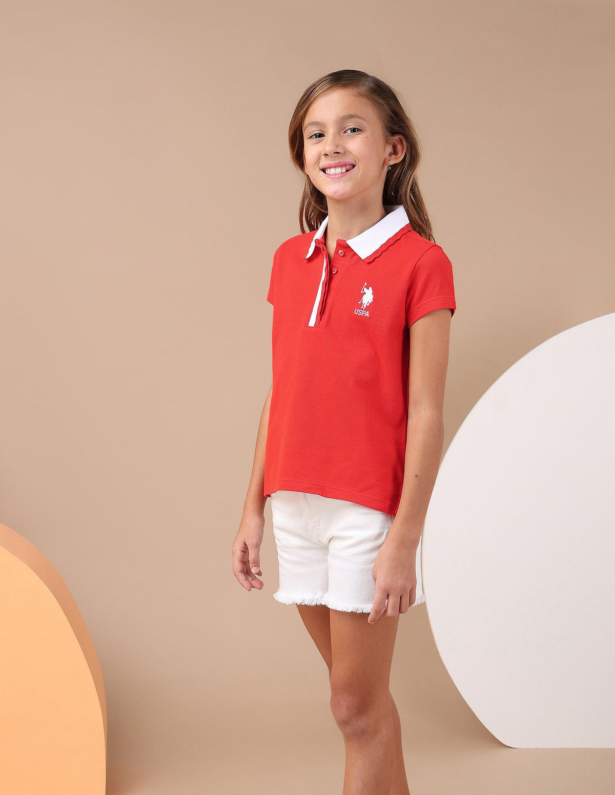Girls Contrast Collar Relaxed Fit Polo Shirt