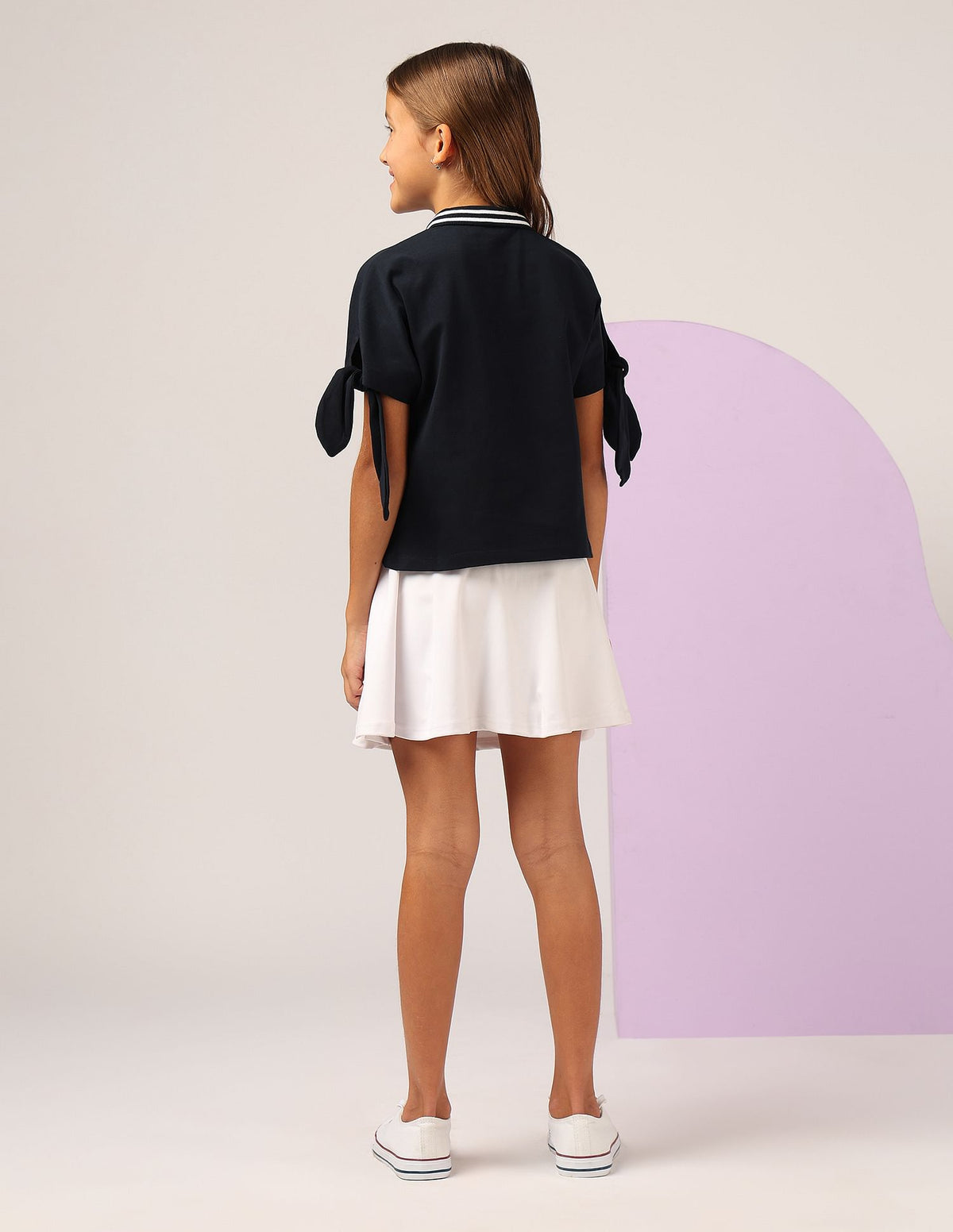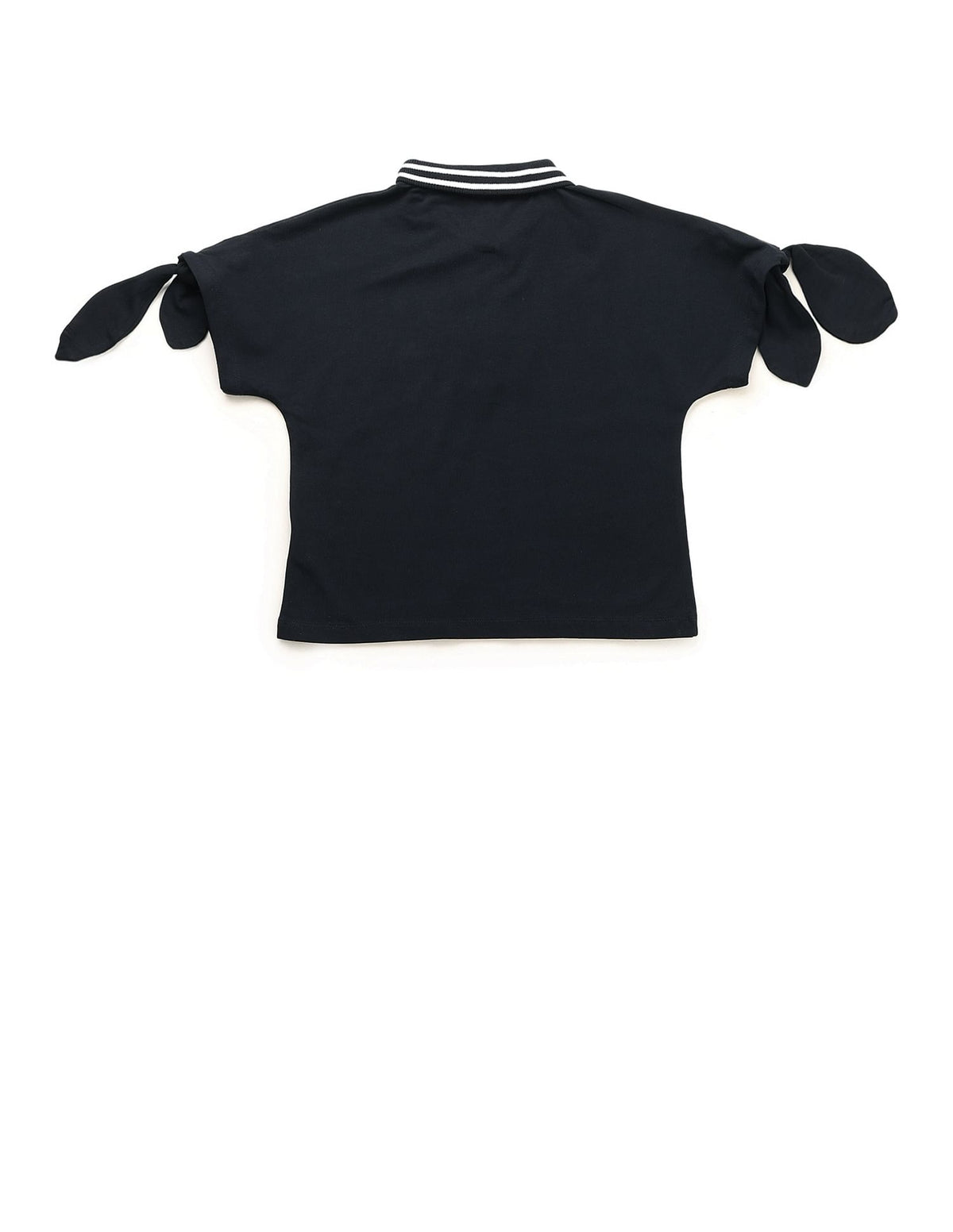 | Polo collar | Logo at chest | Short button placket | Short sleeves with tie-up hems | Straight hem | Solid pattern | Knitted | Regular fit |