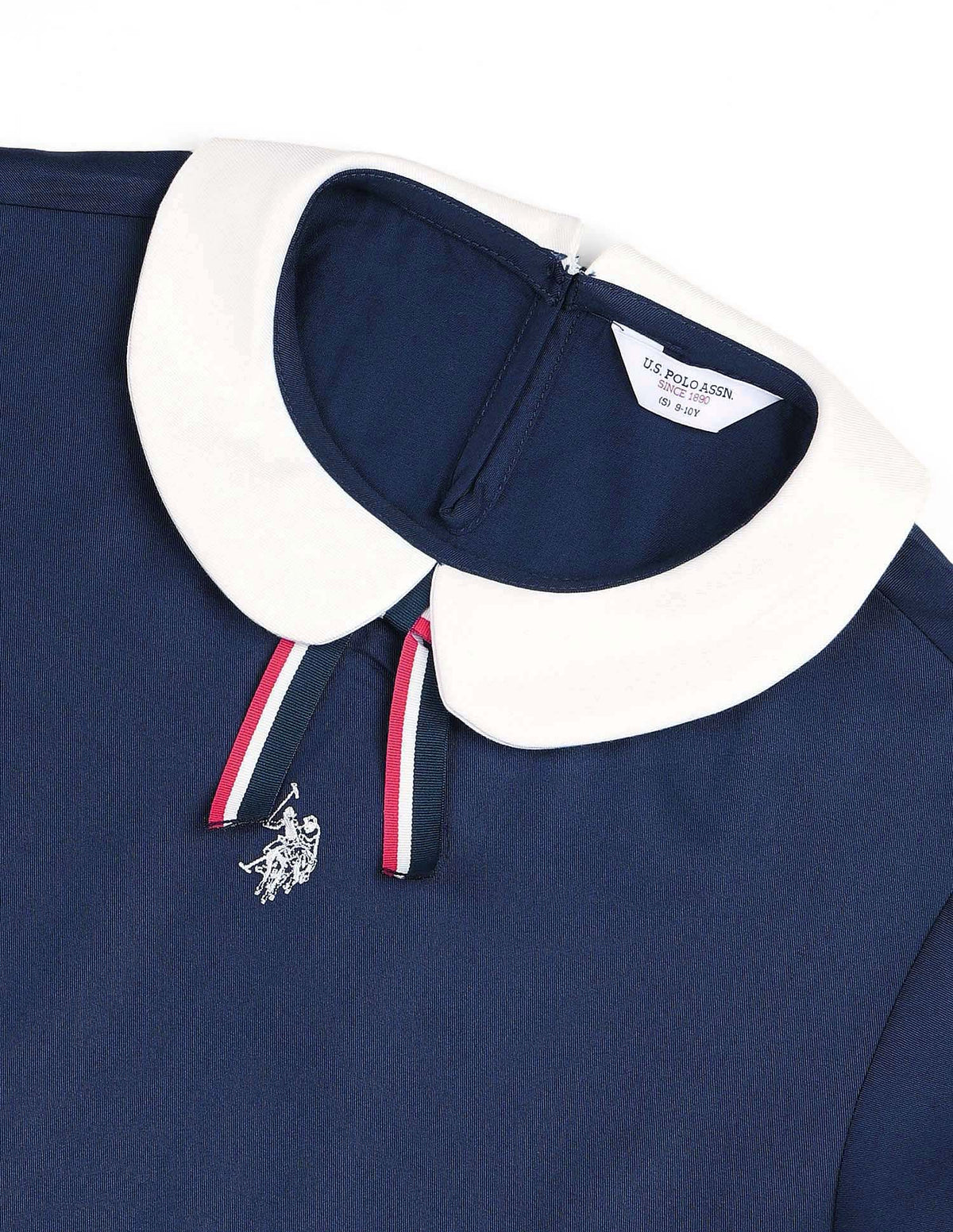 | Peter pan collar | Short sleeves | Solid pattern | Regular fit |