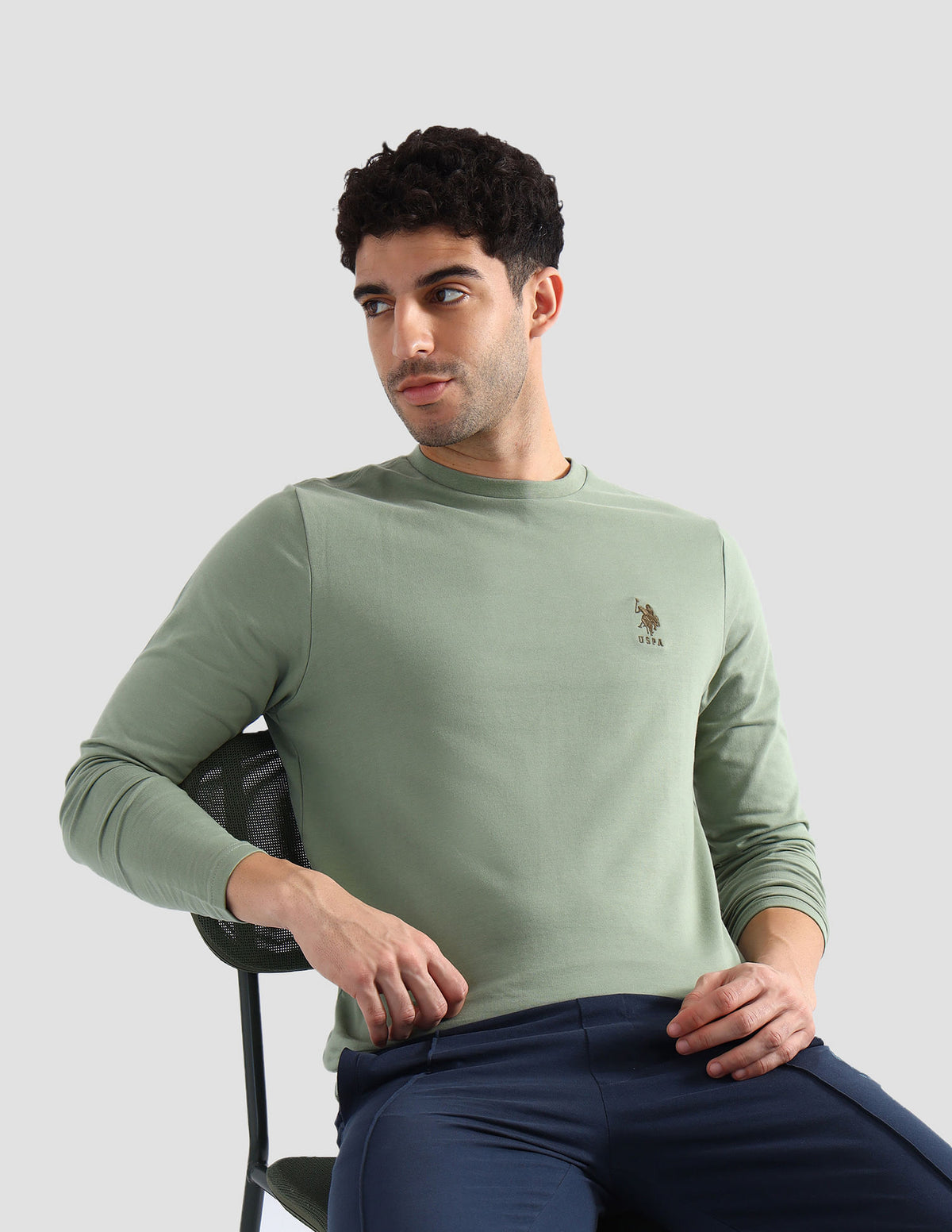 | Ribbed crew neck | Embroidered logo at chest | Long sleeves | Straight hemline | Solid pattern | Knitted | Regular fit | Country Of Origin - India