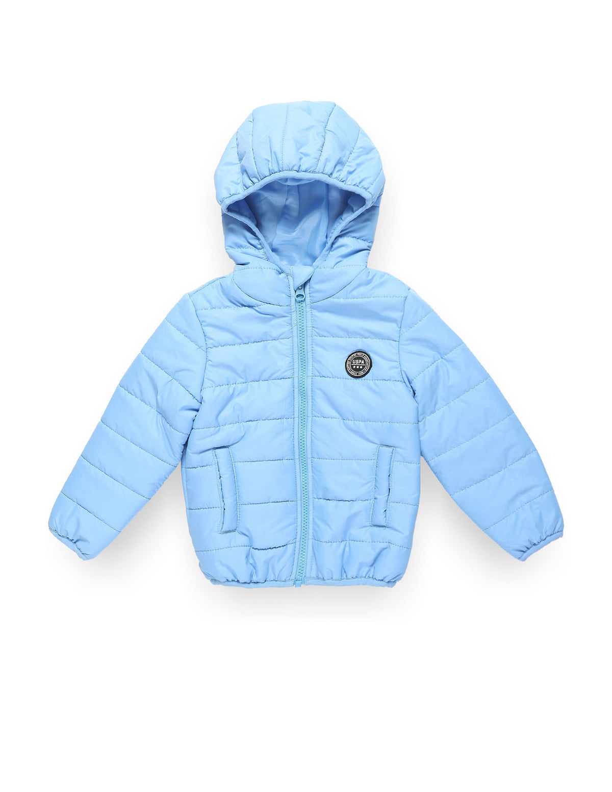 Story: Let your little guy stay warm and stylish by slipping on this puffer jacket with a hood.