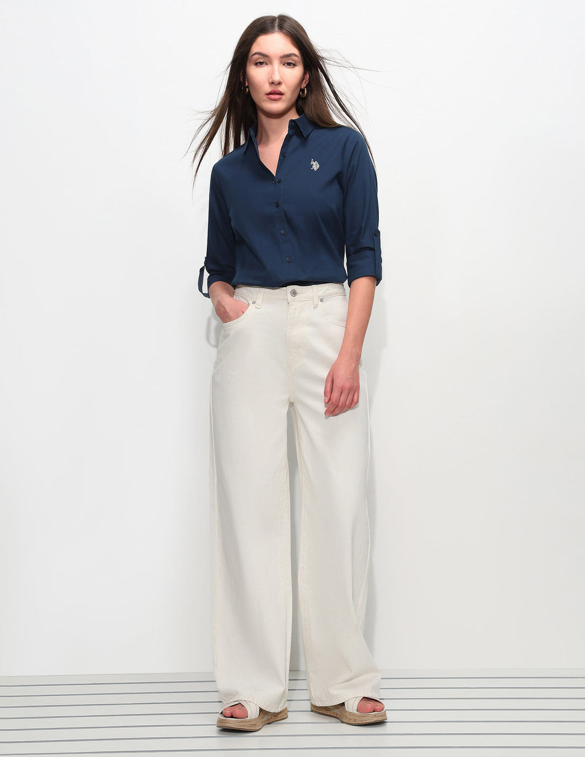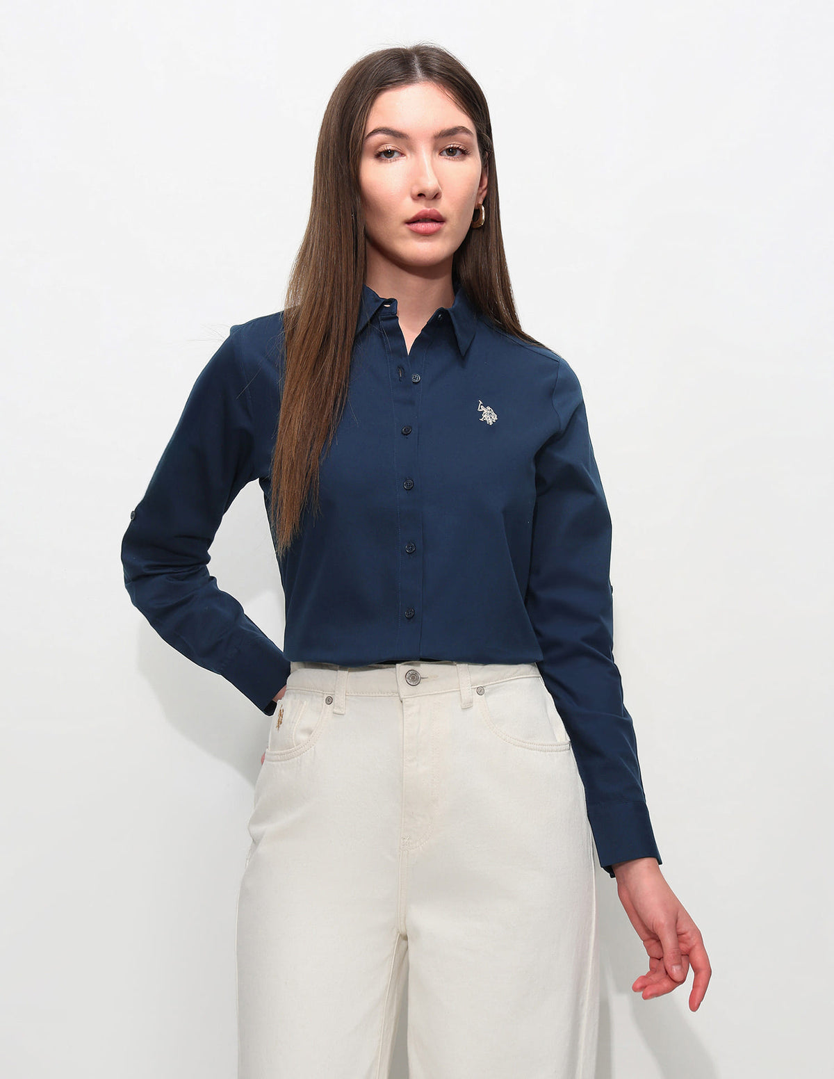 - Long sleeves with barrel cuffs