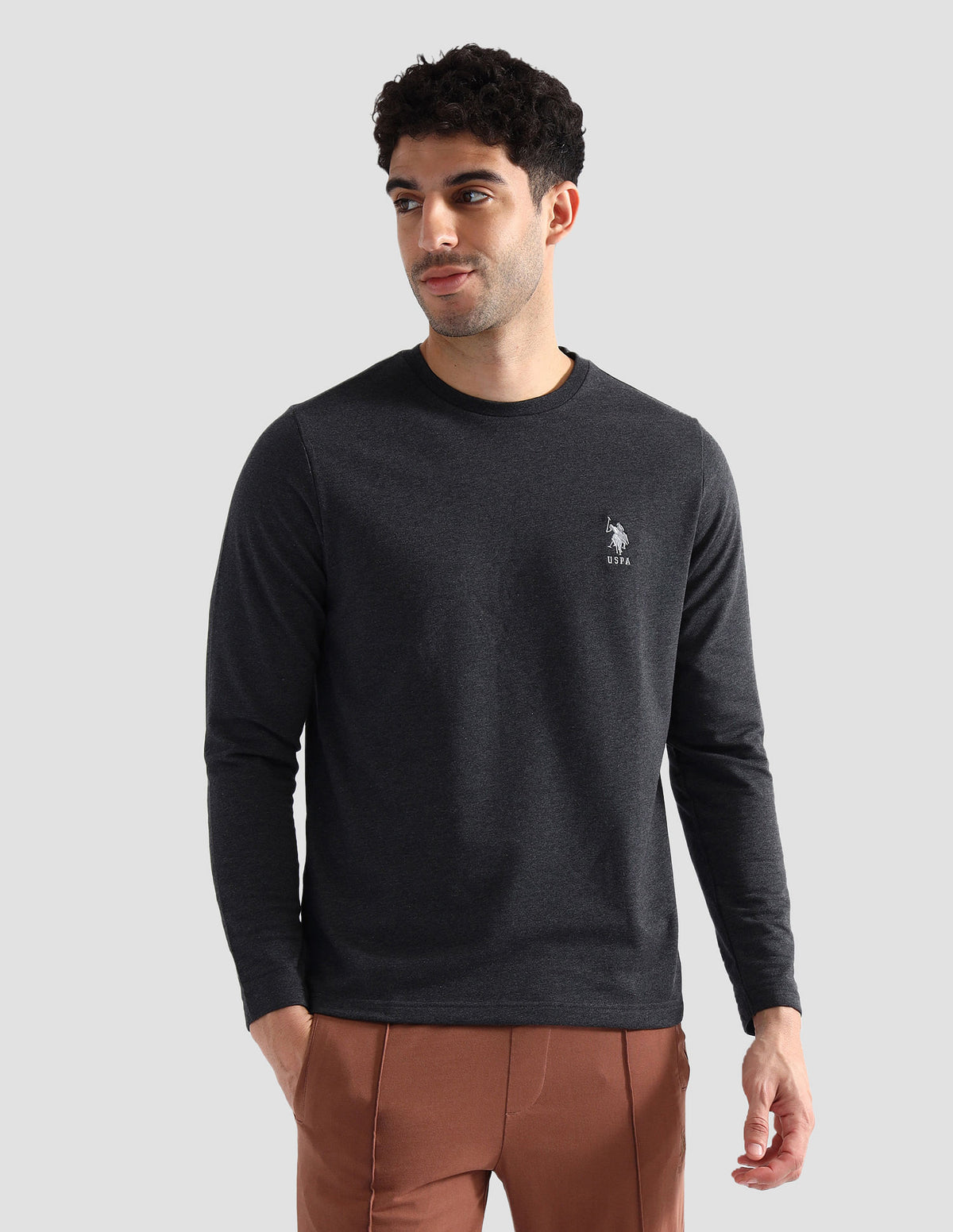 | Ribbed crew neck | Embroidered logo at chest | Long sleeves | Straight hemline | Solid pattern | Knitted | Regular fit | Country Of Origin - India