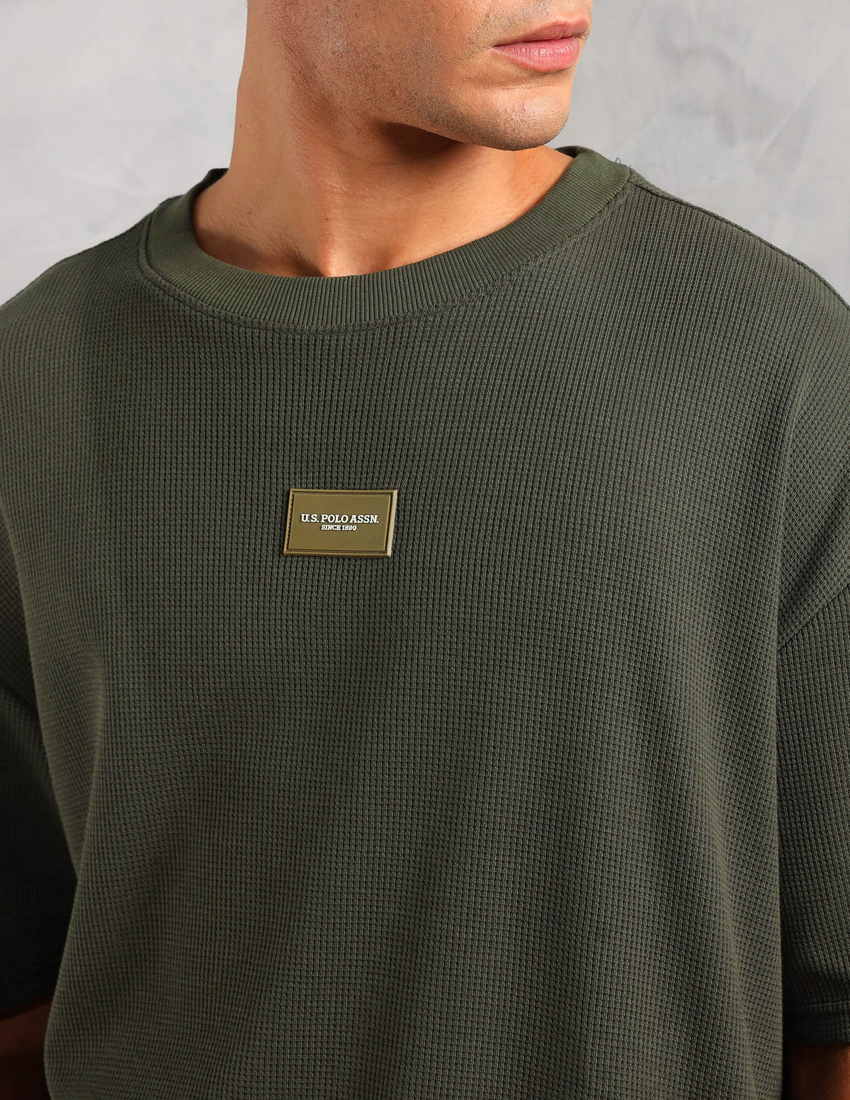 Story: Relax in style with this textured men's t-shirt, perfect for sleep and loungewear comfort all night long.