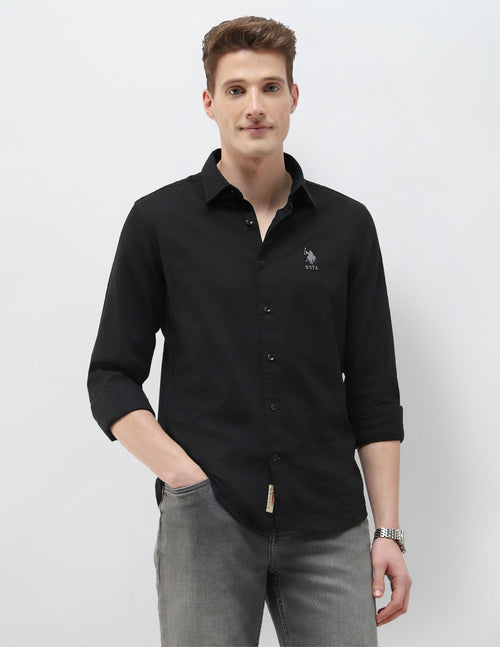 Men Black Slim Fit Solid Casual Shirt