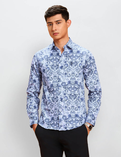 Men Blue Button Down Collar Cotton Solid Formal Shirt