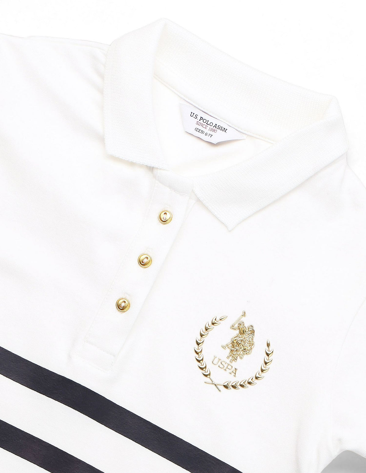 | Polo collar | Logo at chest | Short button placket closure | Short sleeves | Horizontal striped pattern | Regular fit |