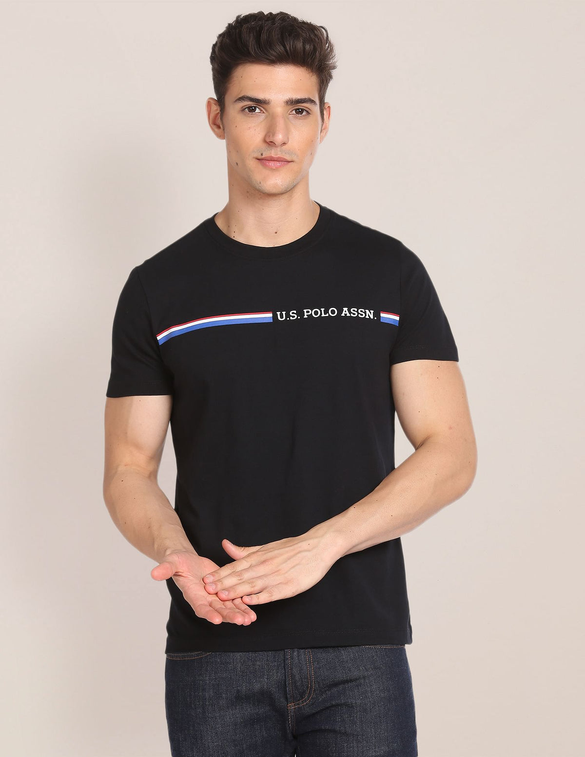 Story: This brand printed t-shirt is made of pure cotton and adds a dash of colour and sportiness to your wardrobe.