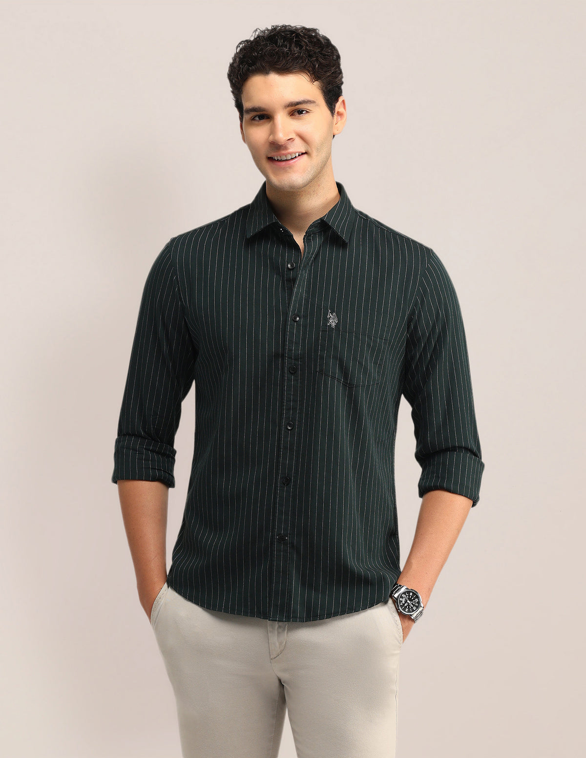 Story: Stand out in vertical stripes with this yds oxford shirt. A casual essential that adds flair to any outfit.