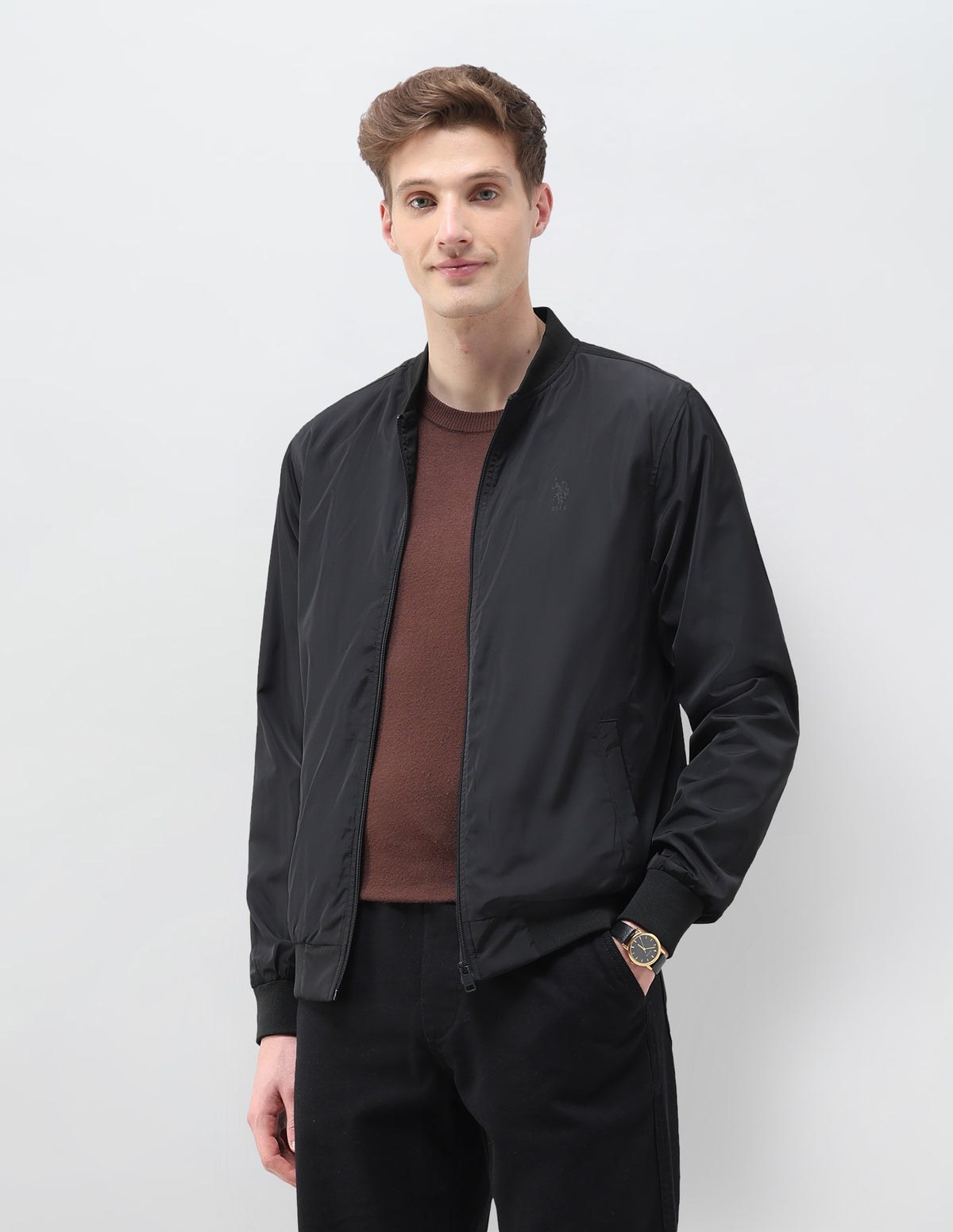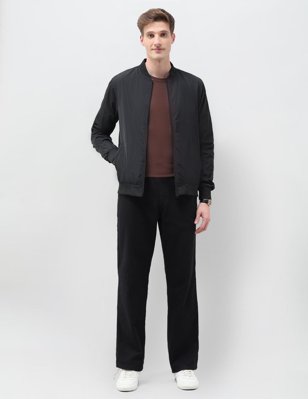 Solid Regular Fit Bomber Jacket