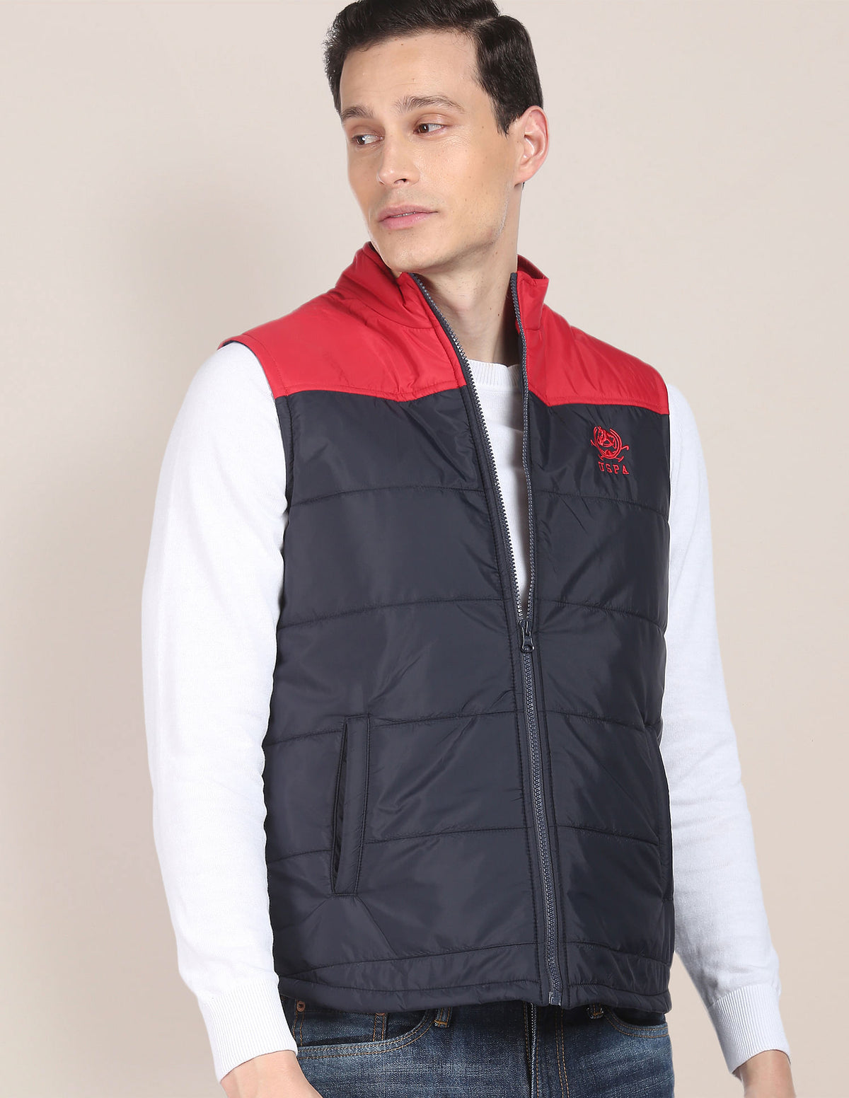Sleeveless Colour Block Puffer Jacket