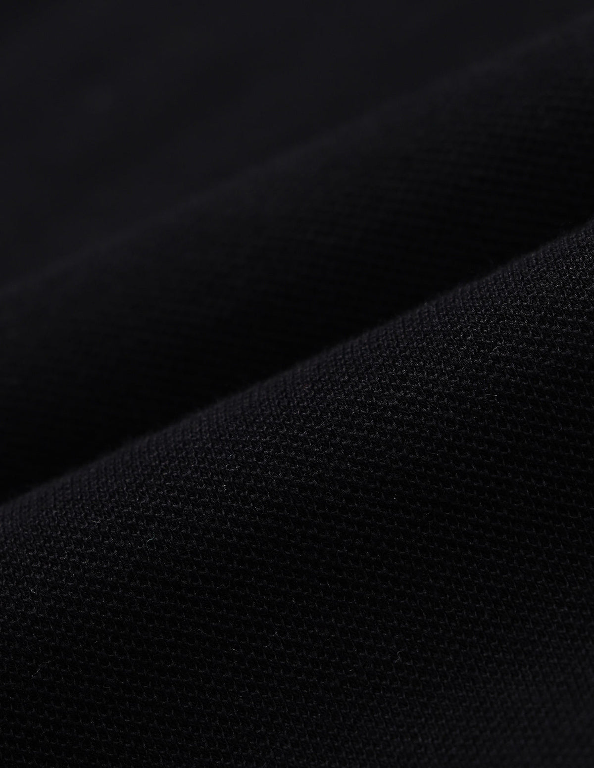 | Polo collar | Embroidered logo at chest | Short button placket | Short sleeves | Ribbed collar and sleeve hems | Uneven vented hem | Solid pattern | Pique knit | Muscle fit