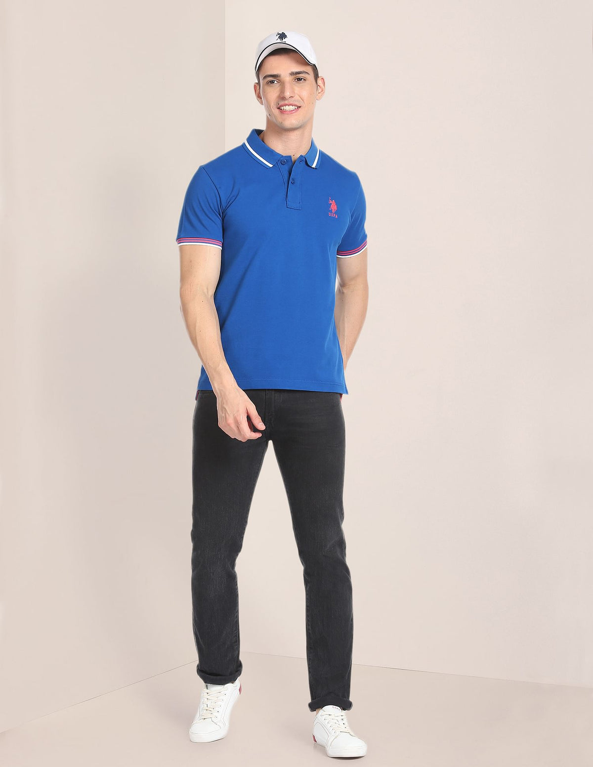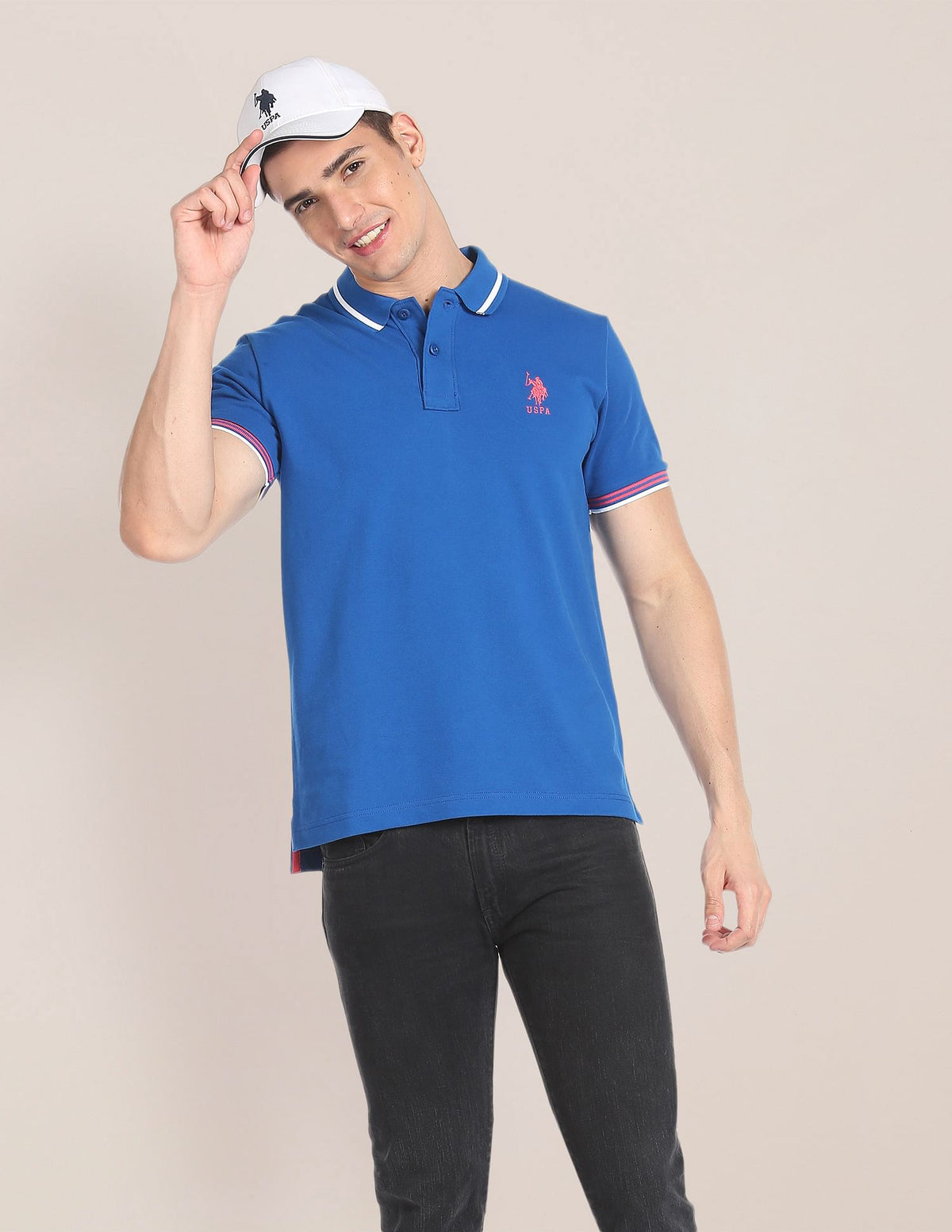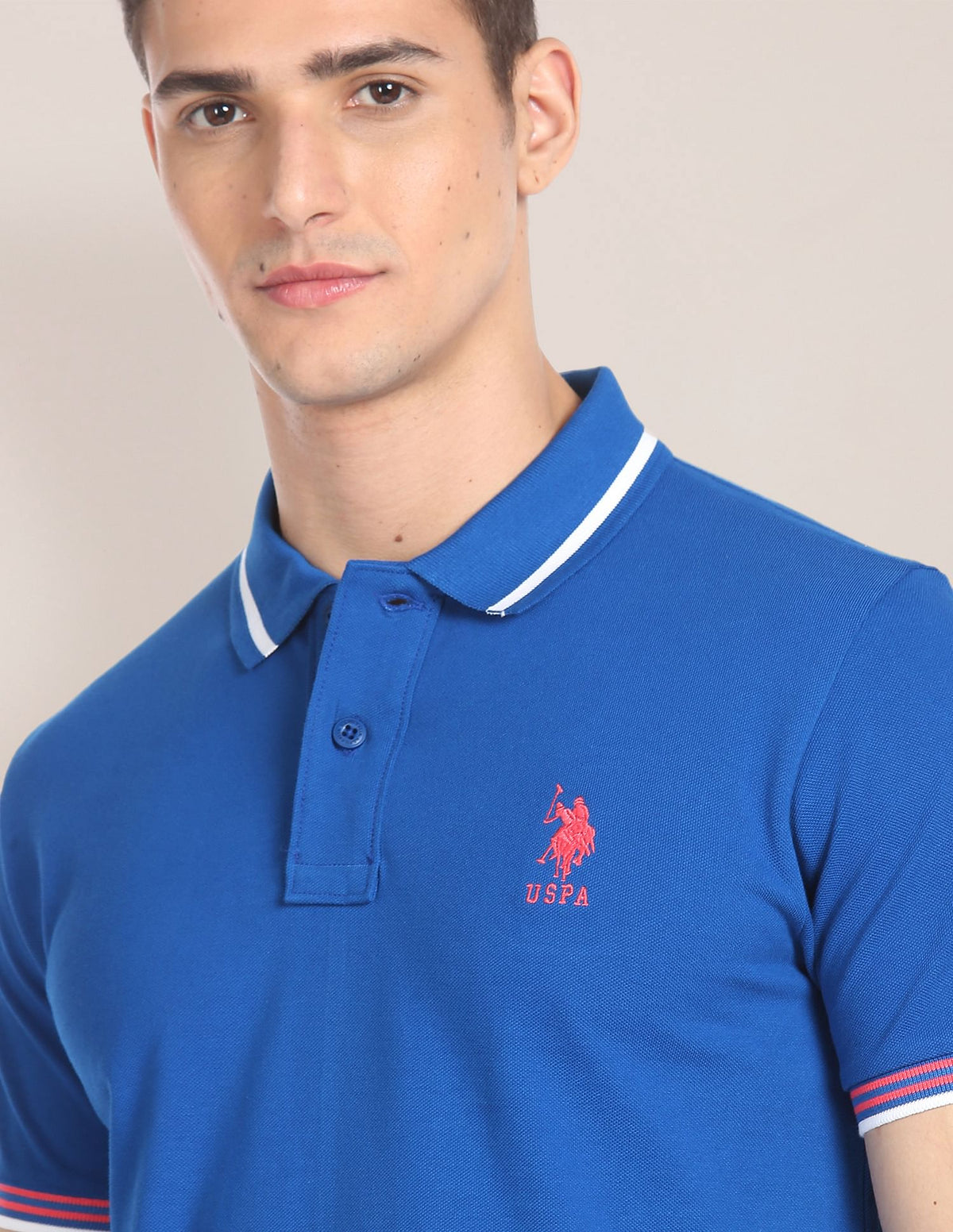 - Ribbed and striped polo collar