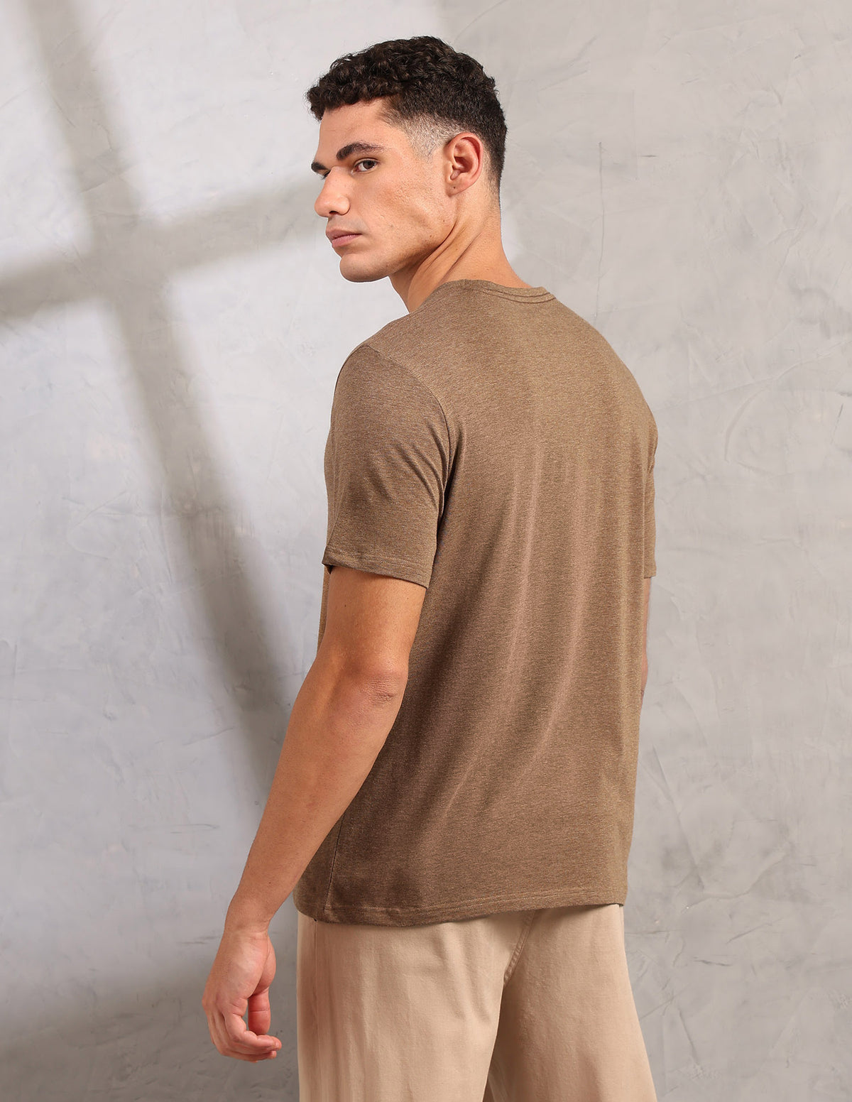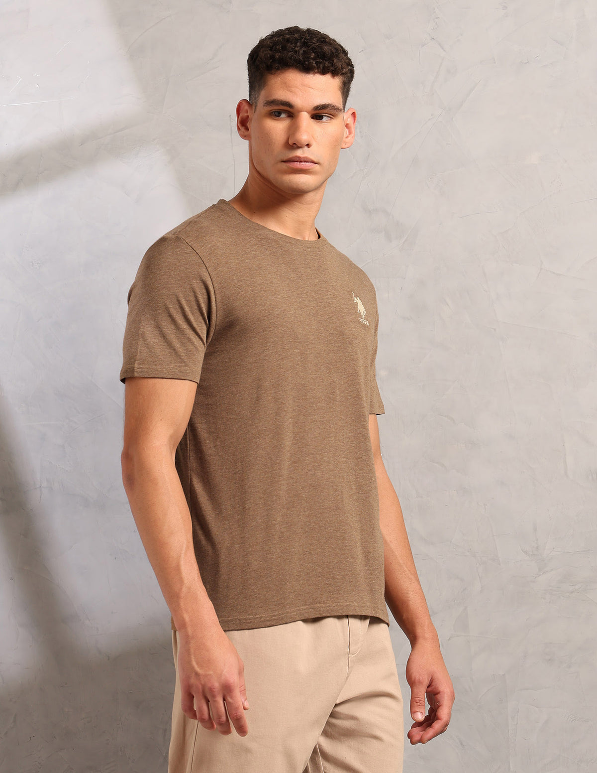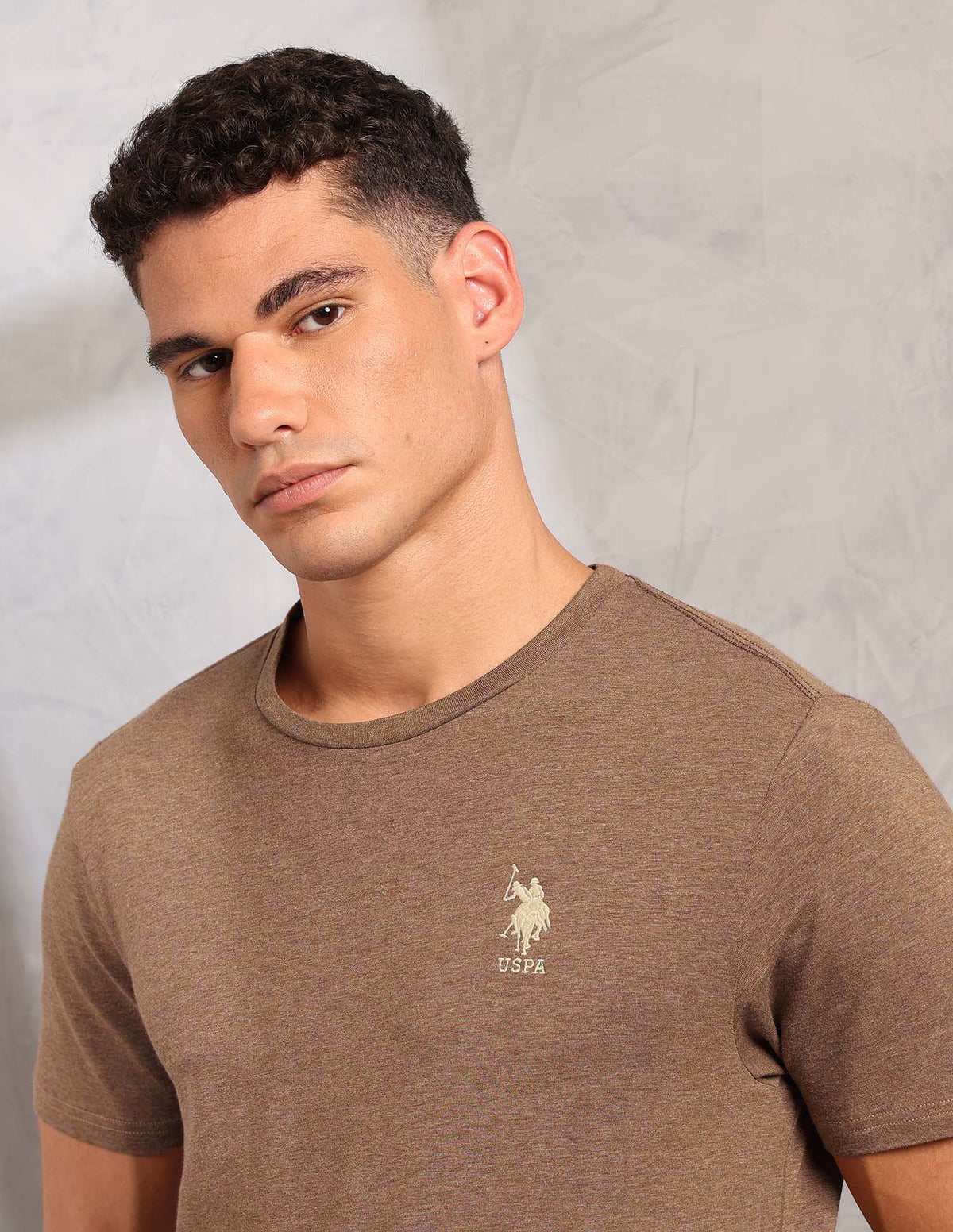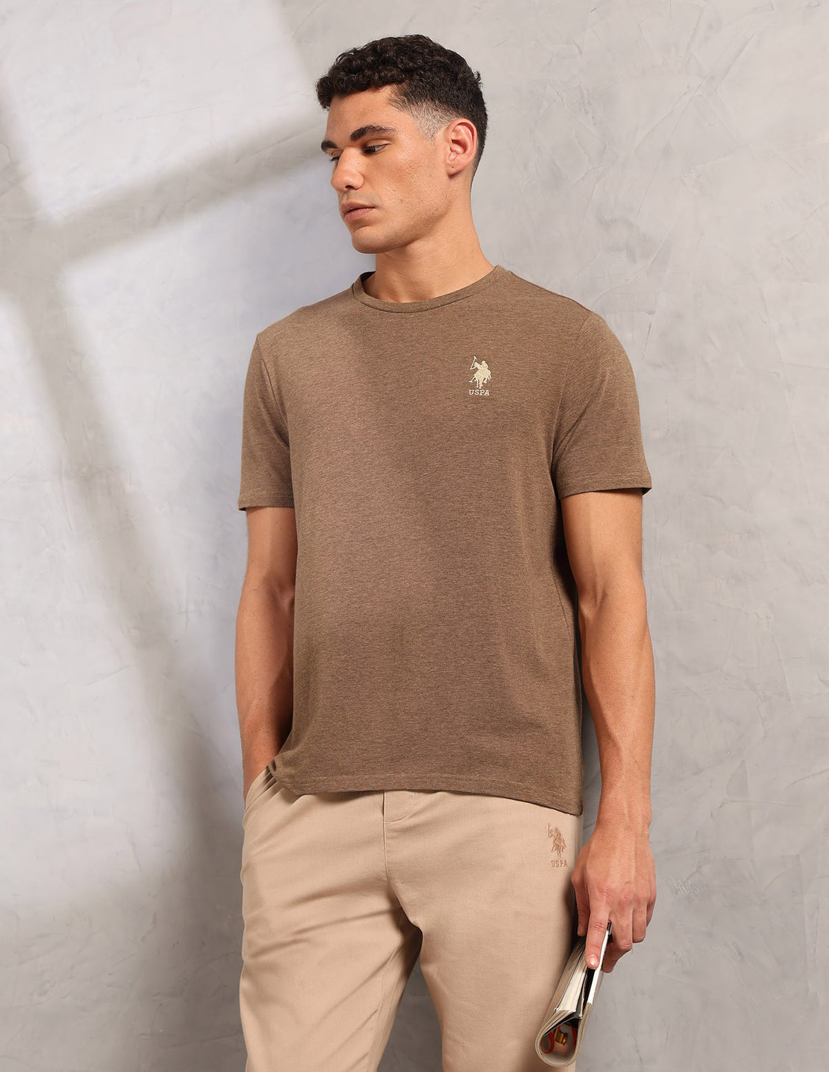 - Heathered pattern and logo at the chest add a casual edge while subtly showcasing brand identity