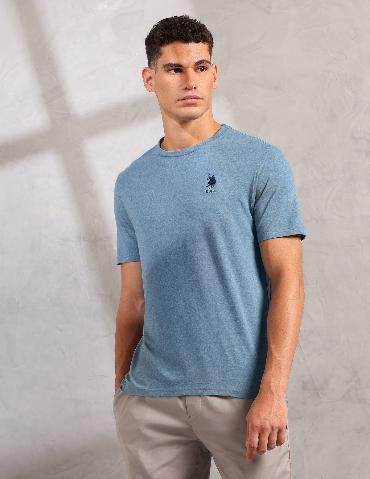 - Heathered pattern and logo at the chest add a casual edge while subtly showcasing brand identity
