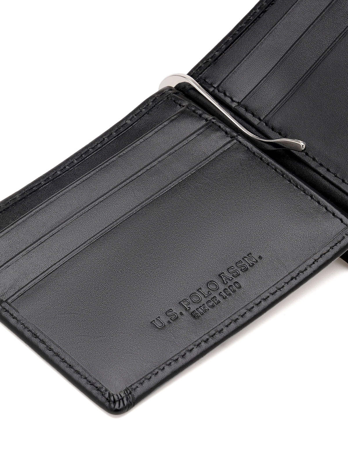 | Bi-fold | One main compartment with a separator sleeve | Eight card holders | Embossed branding at inner and front | Textured pattern |