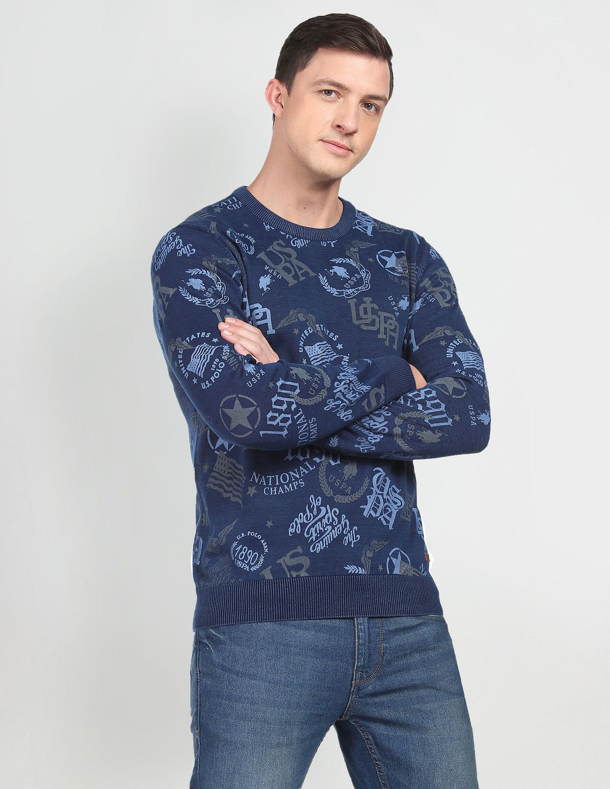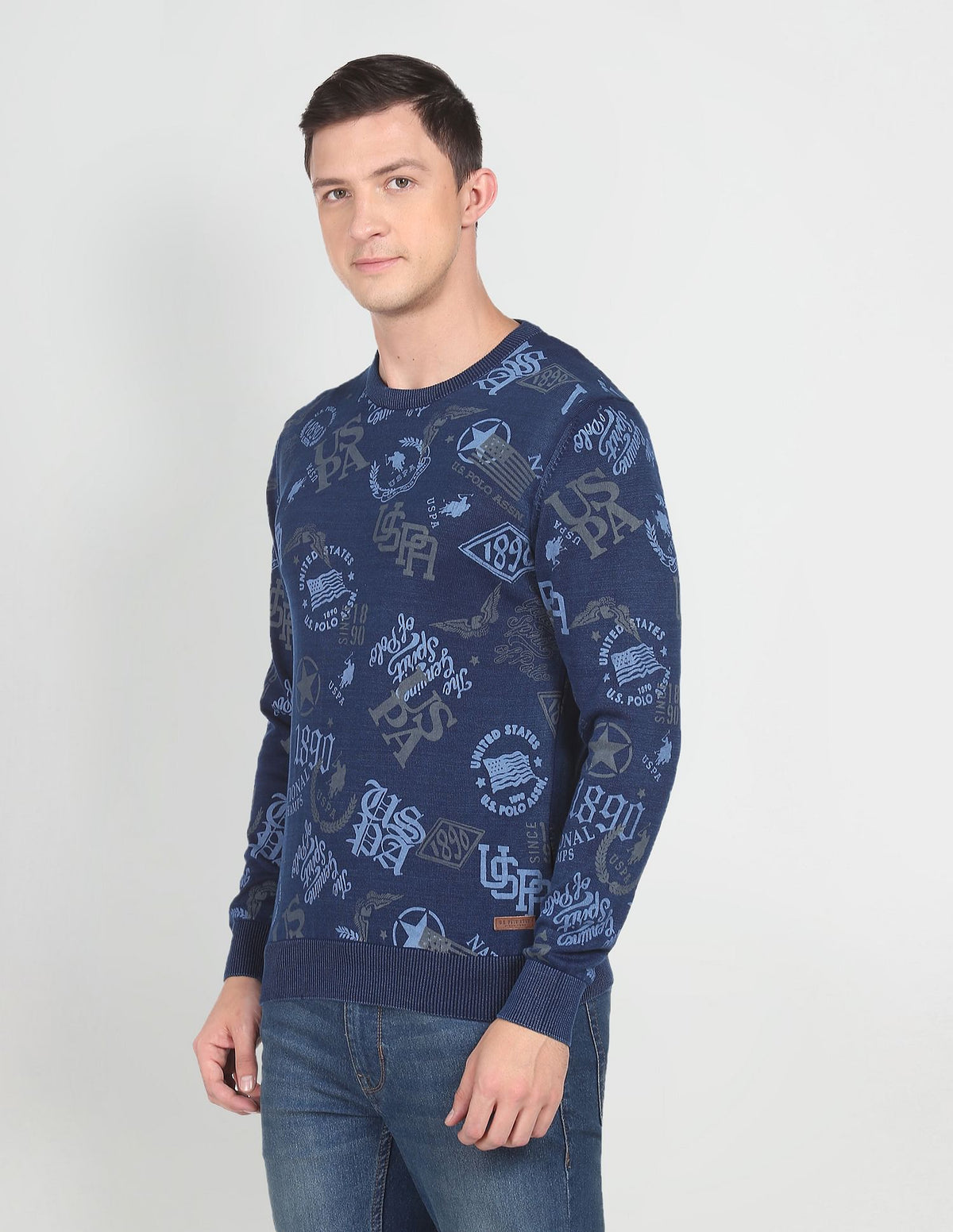 Heathered Brand Print Cotton Sweater