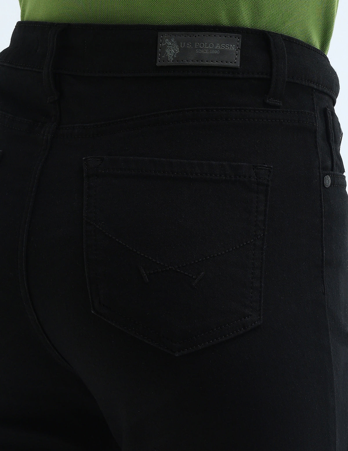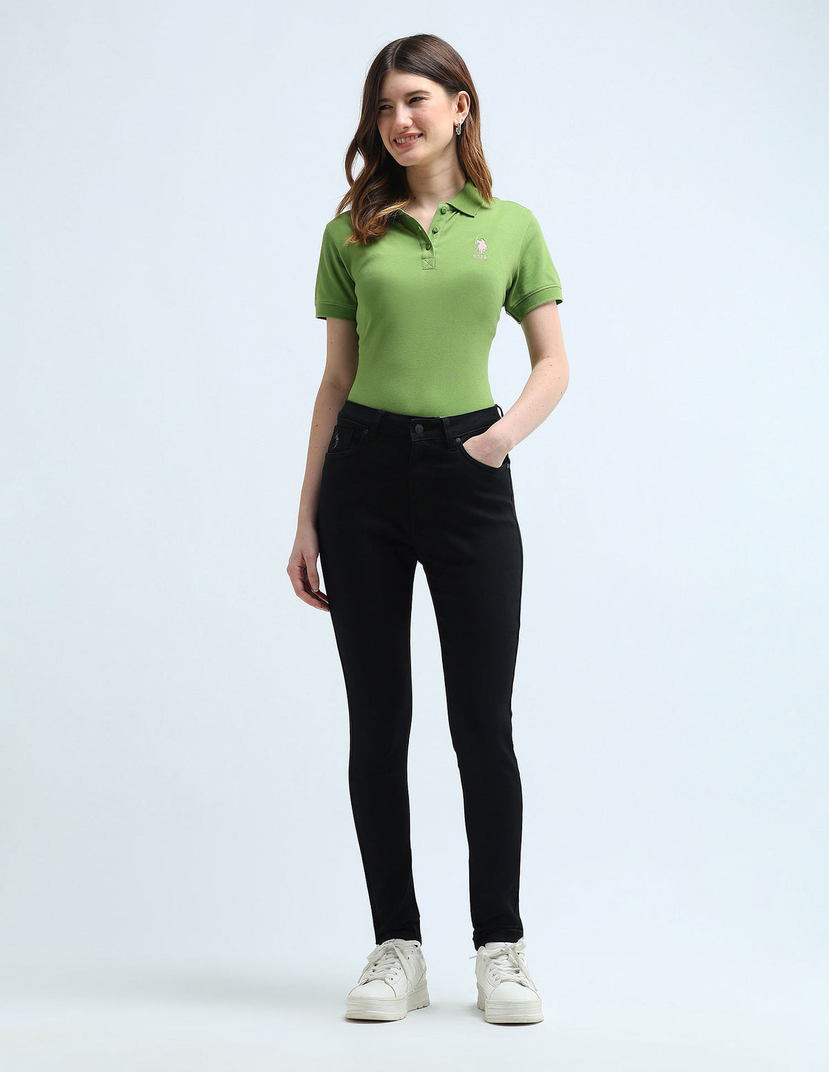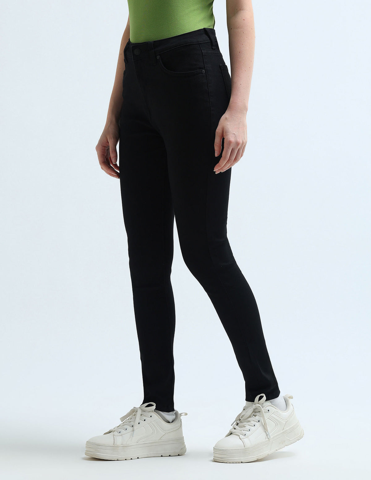 | High-rise waist | Button and zip fly closure | Five pockets | Clean look | Twill weave | Super skinny fit