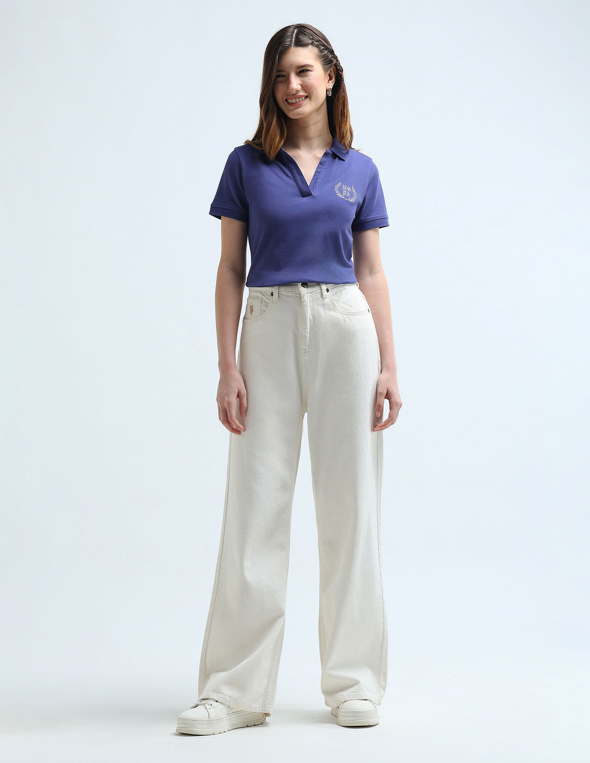 | Polo collar | Embroidered logo at chest | Open placket | Short sleeves | Ribbed collar and sleeve hems | Vented hem | Solid pattern | Pique knit | Regular fit