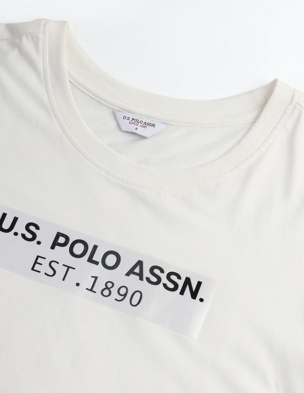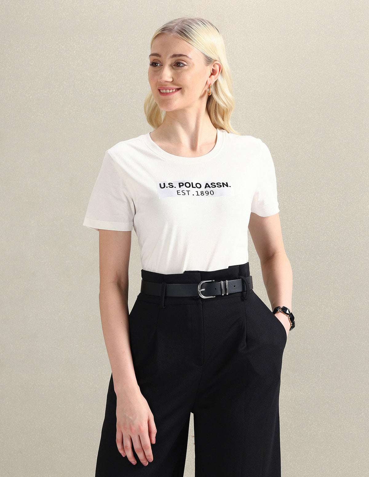 | Crew neck | Short sleeves | Straight hemline | Brand printed pattern | Single jersey knit | Regular fit | Country Of Origin - India