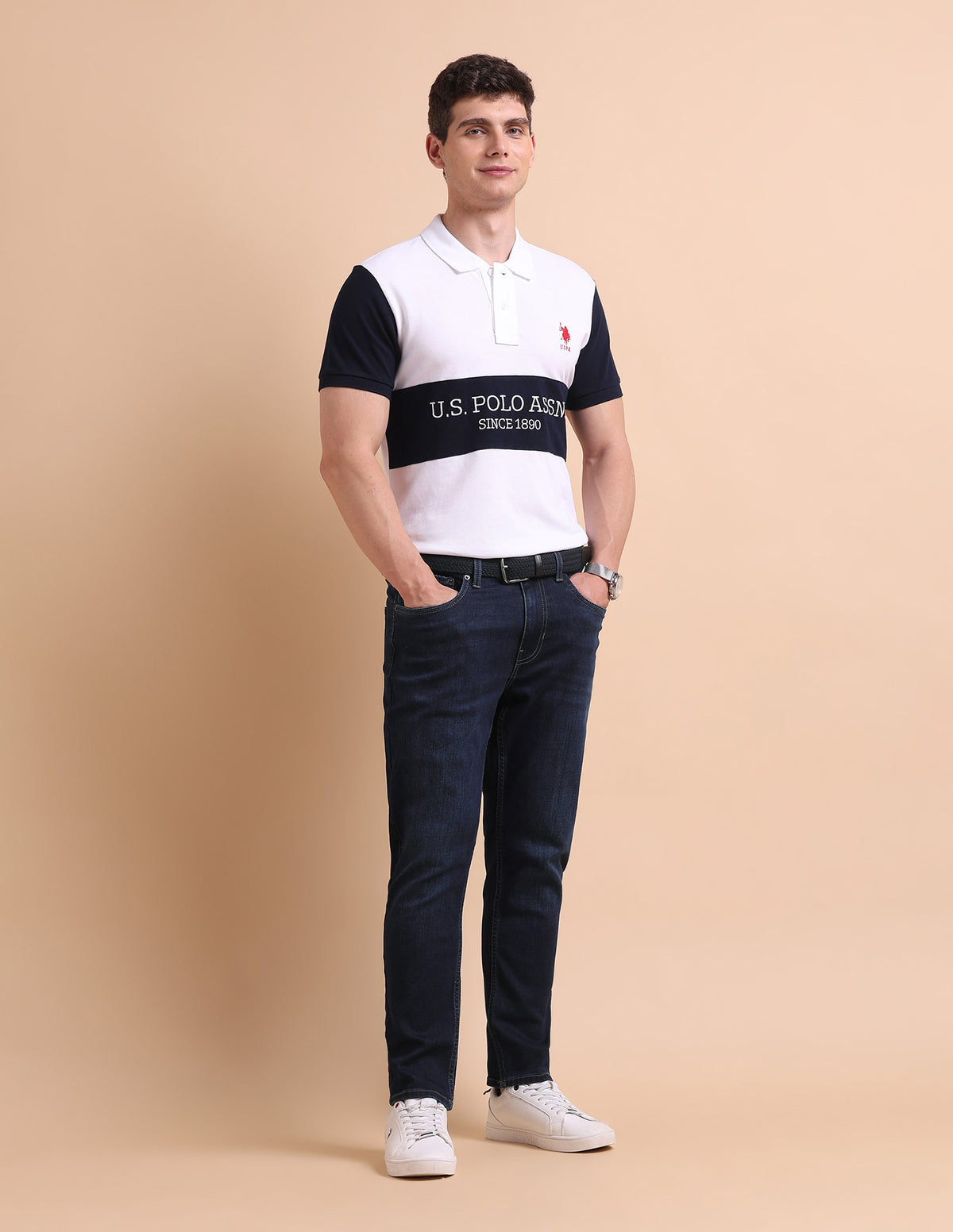 Story: Solid men's jeans for casual wear. Comfortable and stylish, they're ideal for relaxed days and informal events.