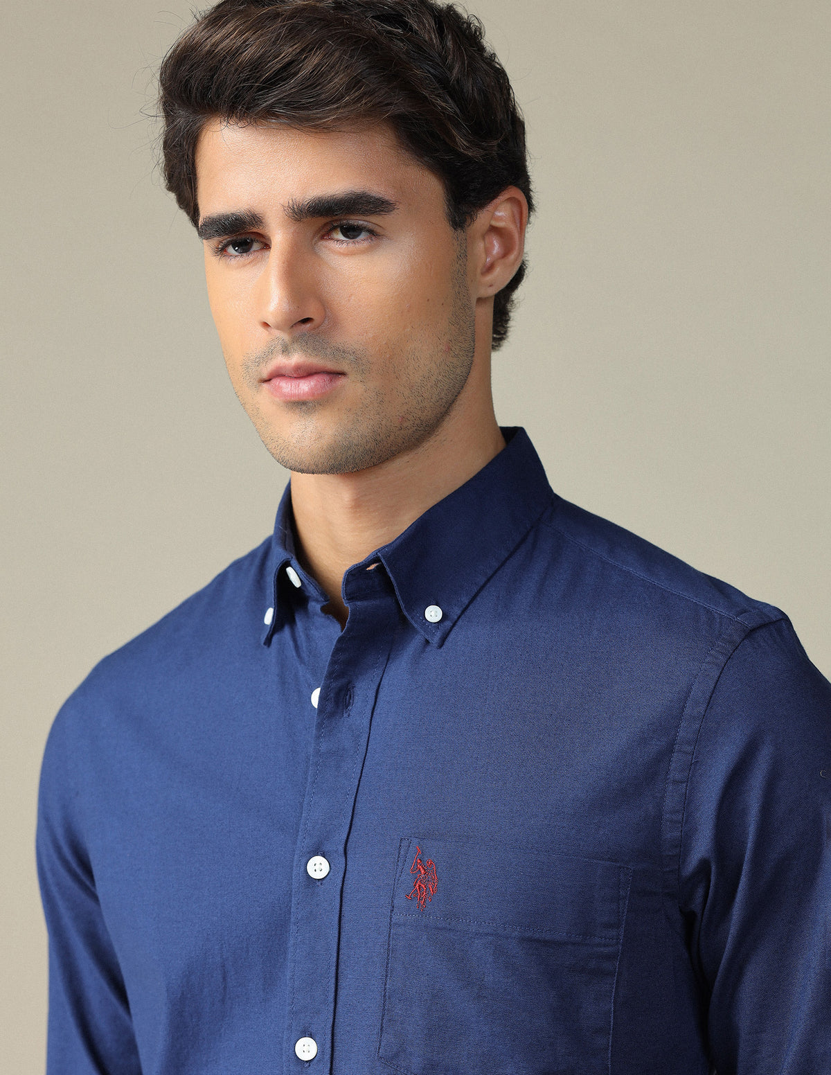 - Button-down collar