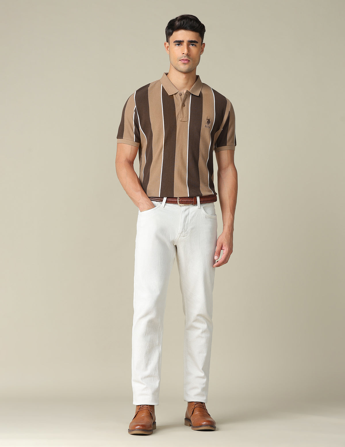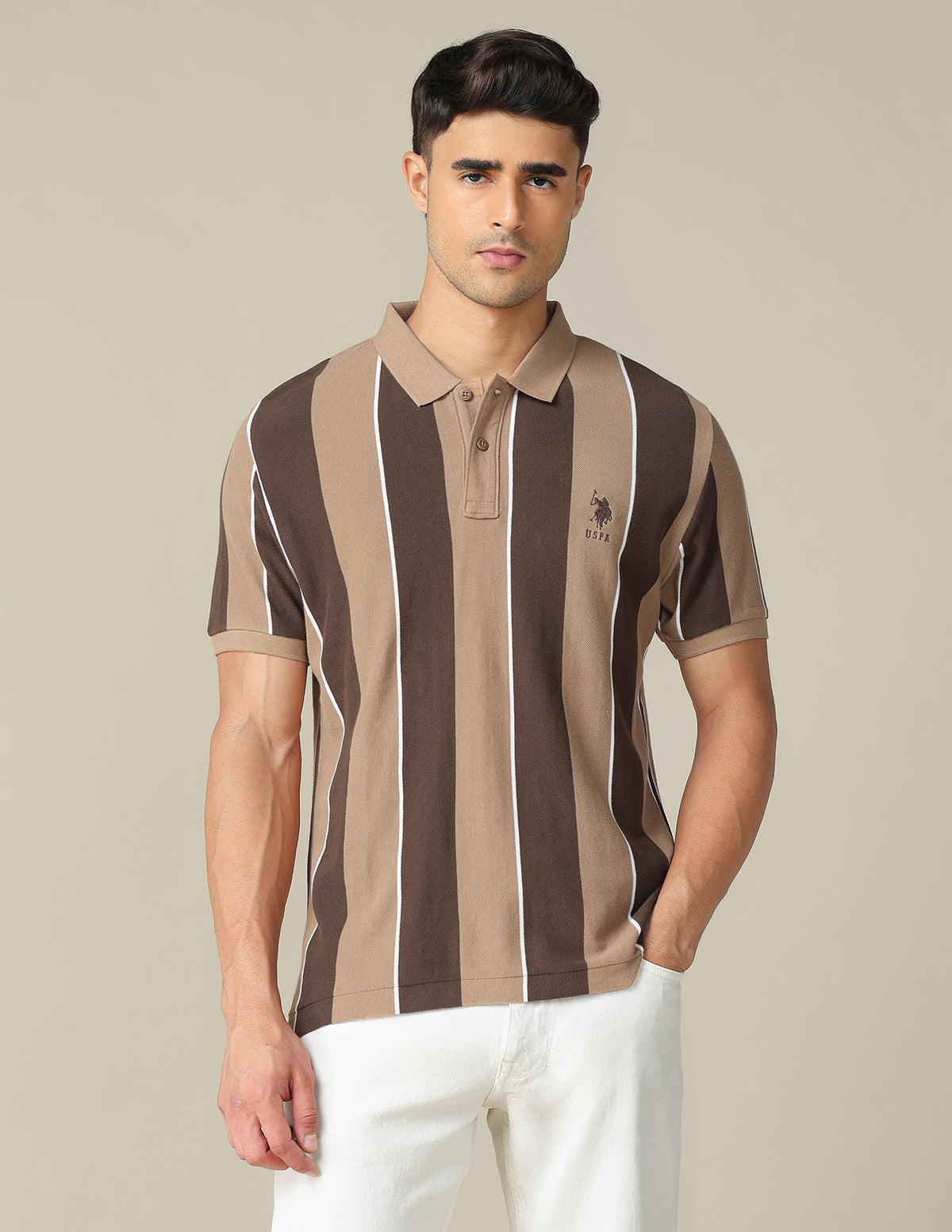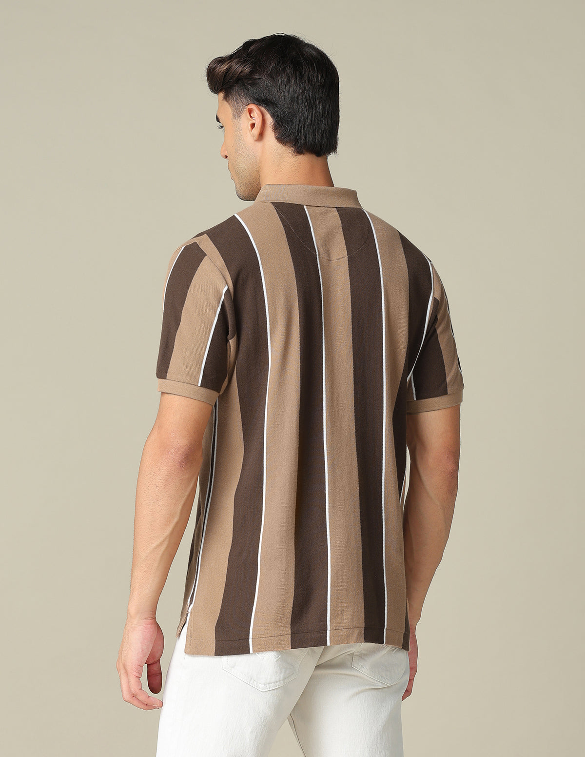 Story: Make a statement in this vertically striped men's T-shirt, ideal for casual outings and adding visual interest to your ensemble.